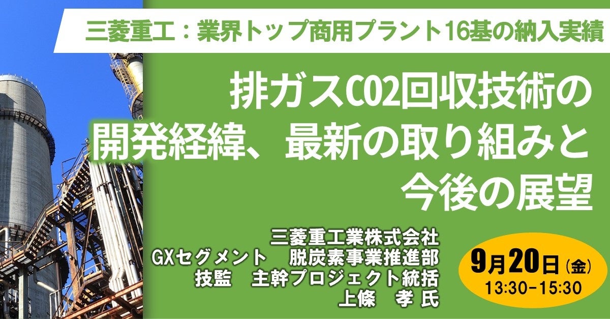 【JPIセミナー】三菱重工業(株)「排ガスCO2回収技術の開発経緯、最新の取り組みと今後の展望」9月20日(金)開催