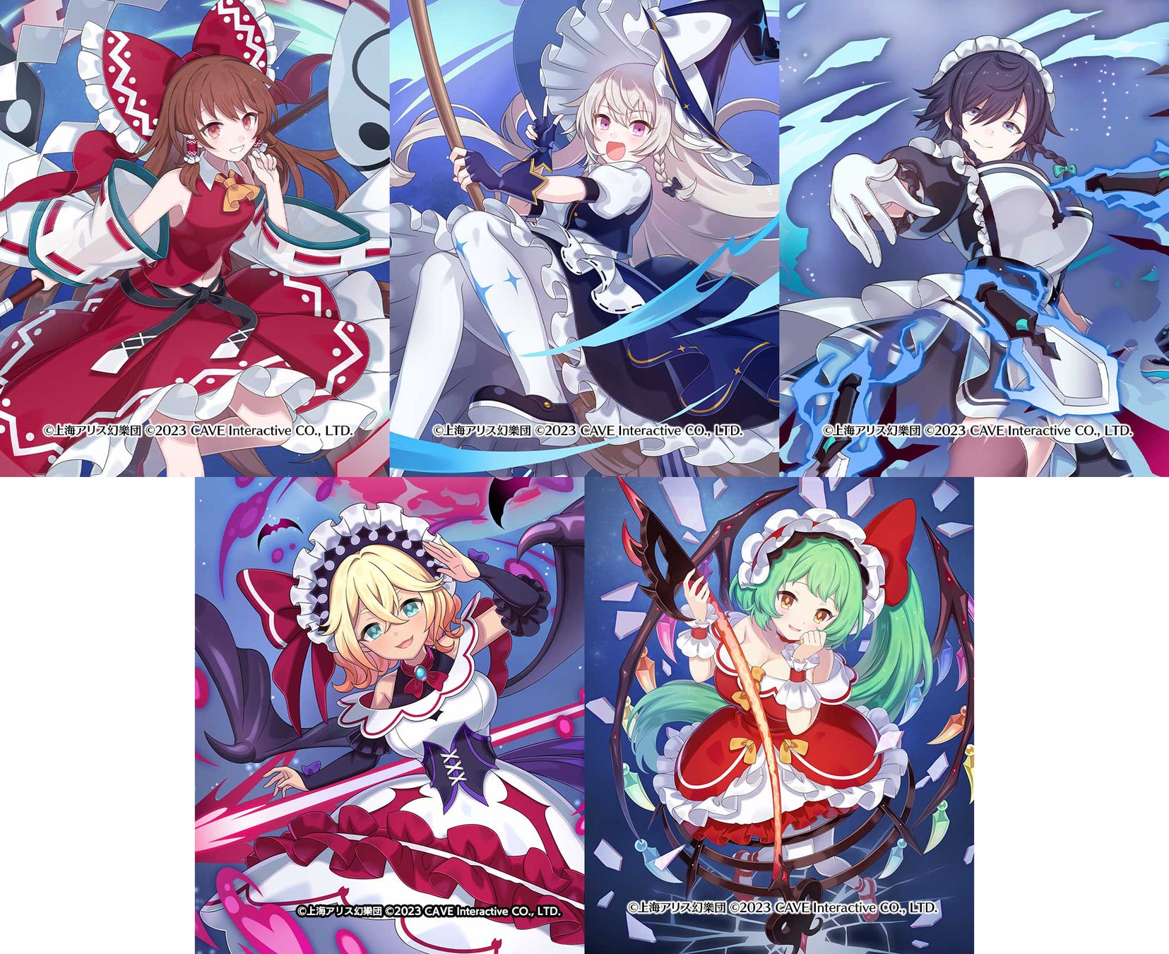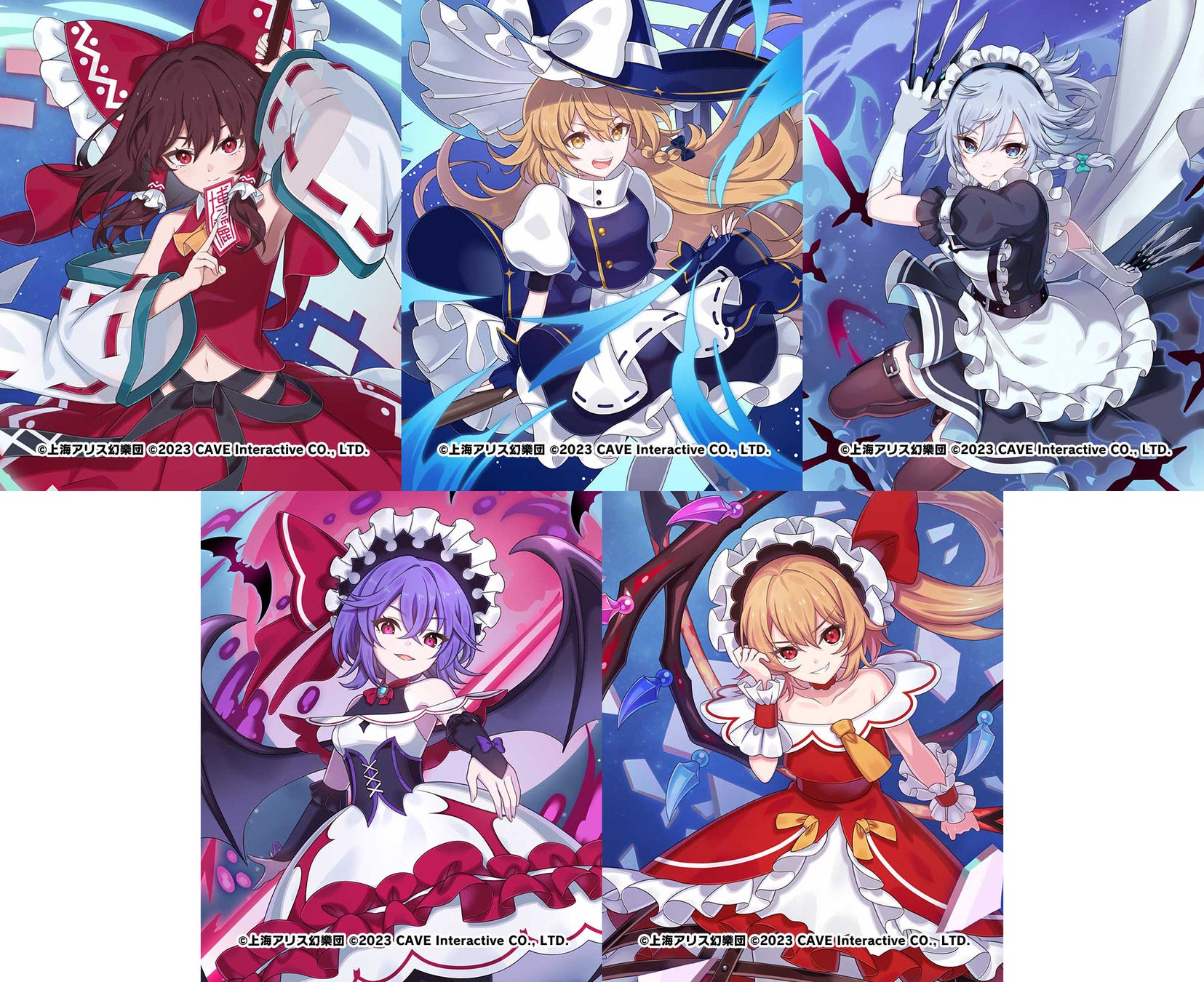 コラボを記念して、「博麗霊夢」「霧雨魔理沙」「十六夜咲夜」「レミリア・スカーレット」「フランドール・スカーレット」の自機スキンが登場中です。