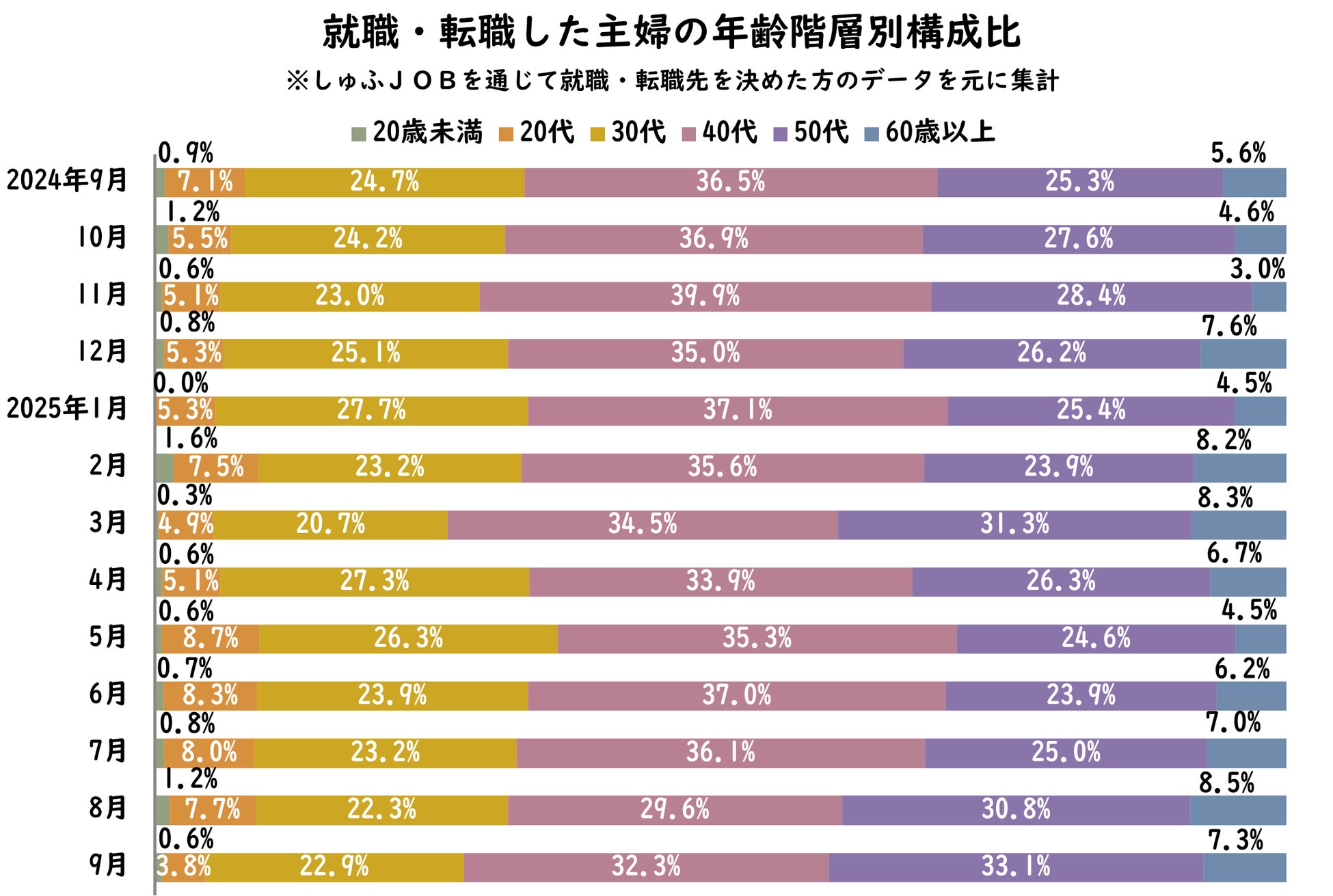 ビースタイルグループで求人サイト『しゅふJOB』を運営する株式会社ビースタイルメディア(本社:東京都新宿区、代表取締役社長:石橋聖文)は、掲載求人から採用に至った採用データから算出した「転職しゅふの平均年齢」を集計しました。