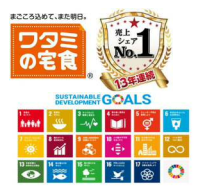 「ワタミの宅食」は、日替わりのお食事と“まごころ”をお届けすることで“社会を支えるインフラ”となることを目指し、事業を展開しています。お弁当・お惣菜は、お客さまと同じ地域に住む“まごころスタッフ”がお届けしています。毎日約24万食のお弁当・お惣菜をお届けしており、病者・高齢者食宅配市場「売上シェア13年連続 No.1」※(2010年~2022年)を達成しています。2020年3月には、業界として初めて、自社弁当容器を回収し、新たな容器としてリサイクルする取り組みを全国に展開するなど、SDGsの目標達成にも貢献しています。