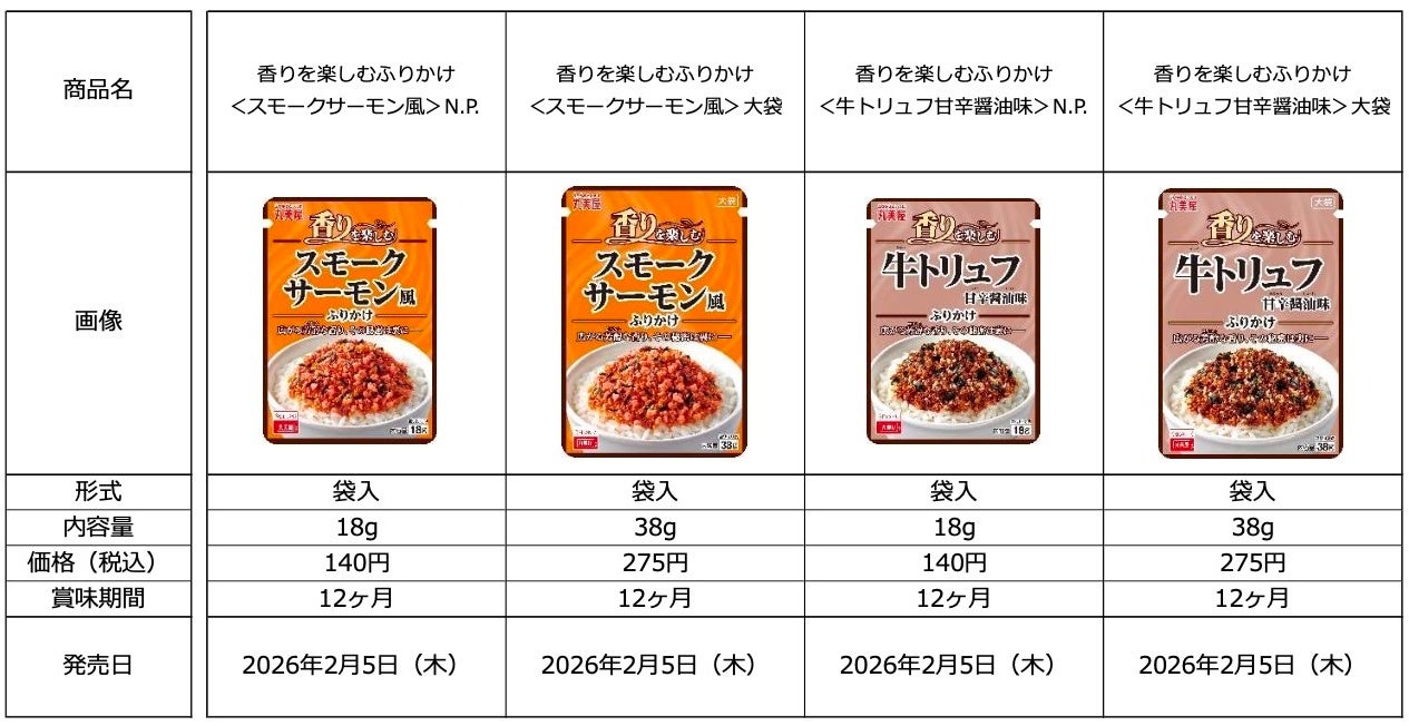 「香りを楽しむふりかけ<スモークサーモン風><牛トリュフ甘辛醤油味>」~2026 年 2 月 5 日(木)新発売~
