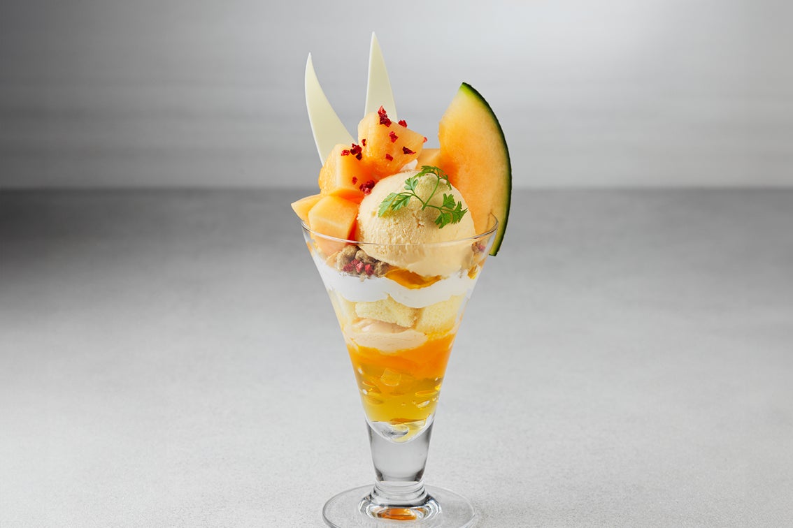 ジューシーで華やかな甘みが広がる、旬の北海道産赤肉メロンを使用した夏限定のパフェ。