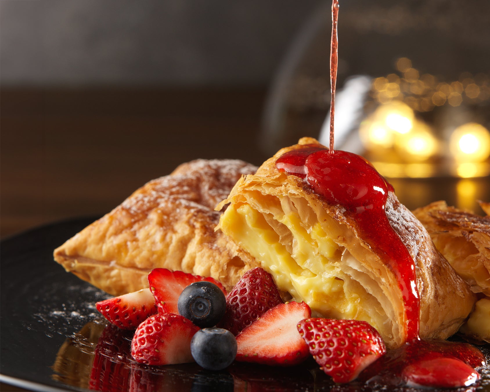 サクサクと香ばしいパイ生地、そして華やかな甘酸っぱさが広がる苺が絶妙なアクセントに。