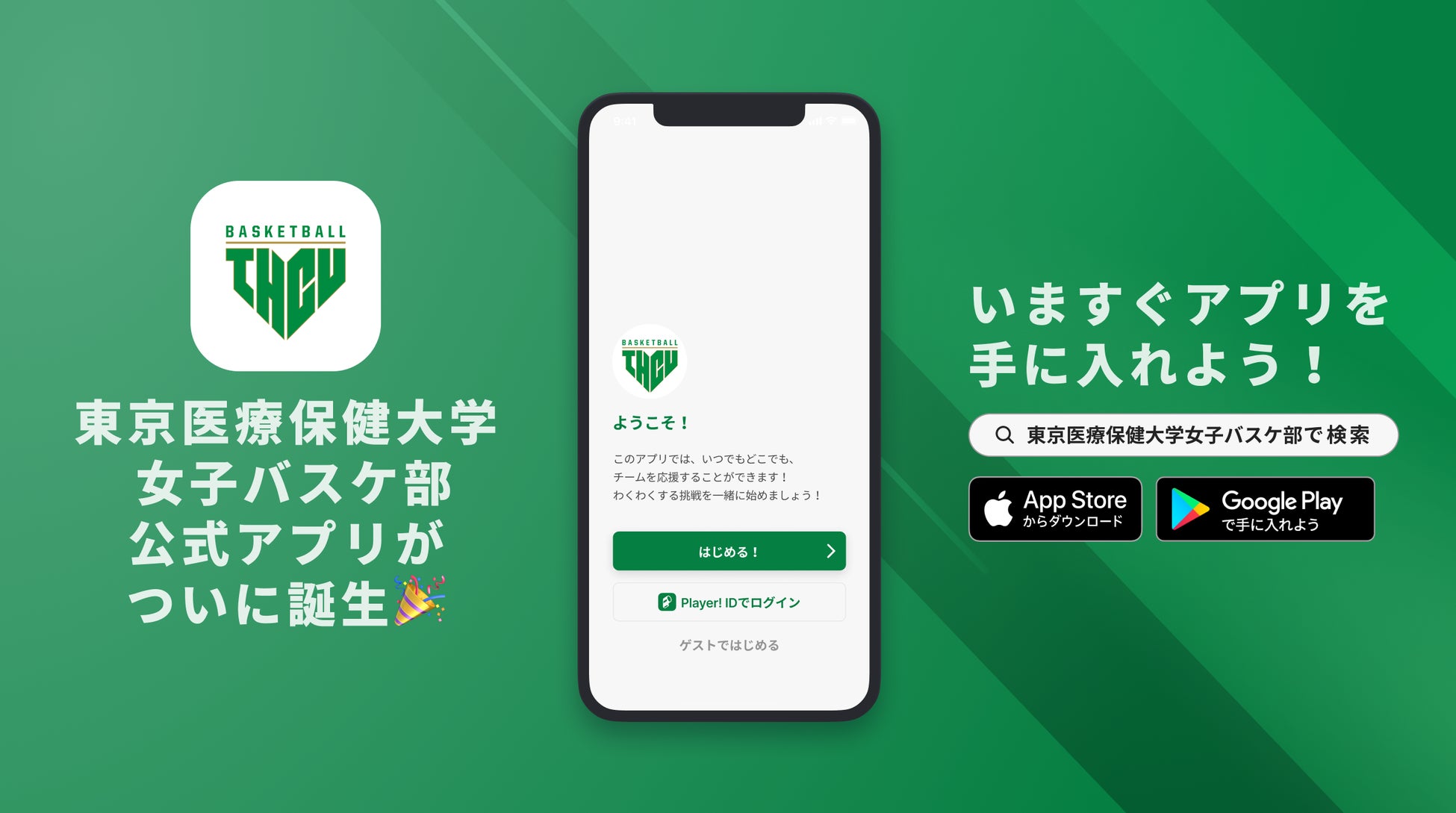 AppStoreもしくはGooglePlayで「東京医療保健大学女子バスケ部」と検索!