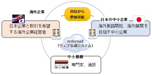 こうした背景を踏まえ、日本にいながら海外政府機関等から推薦を受けた海外企業経営者等との商談機会を提供することにより、輸出拡大や海外企業との連携による新製品開発など、日本の中小企業の売上拡大、付加価値向上を目指す支援を実施します。