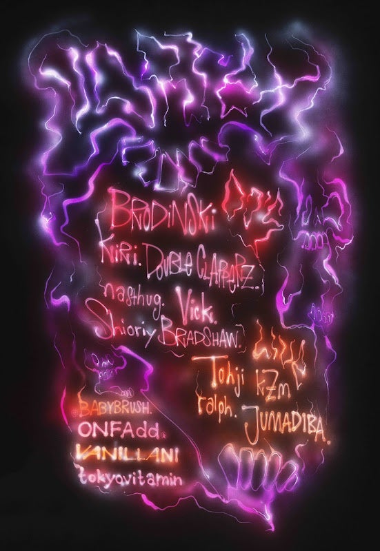 また、本イベントのアートワークや、off whiteを初め多くのアーティストやブランドのアートワークを手がけているBABYBRUSHとONFAddによるPOP UPもバーニーズニューヨーク六本木店にて期間限定(8/19-8/28)で行われる予定となっており、是非足を運んでいただきたいOPEN 22:00