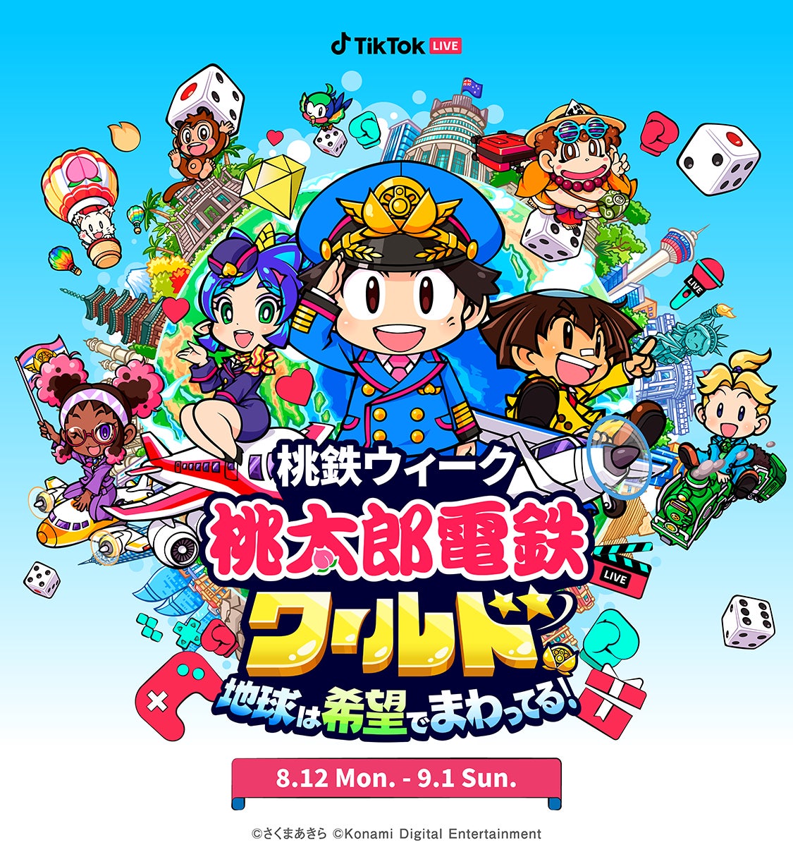 ショートムービープラットフォーム「TikTok(ティックトック)」は、TikTok LIVEにて、大ヒットゲーム『桃太郎電鉄ワールド ~地球は希望でまわってる!~』(以下「桃太郎電鉄ワールド」 )(発売元:株式会社コナミデジタルエンタテインメント)との3つのコラボイベント「桃鉄ウィーク」を8月12日(月)より開催いたします。