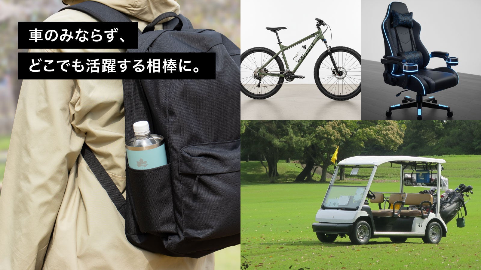 車のドリンクホルダー以外にも、自転車のボトルゲージやリュックサック、デスクチェアなどで使用可能。お家で使用すれば冷蔵庫まで取りに行く手間なく、いつでも冷たい飲み物を楽しめる。アウトドアから日常生活まで幅広いシーンで活躍。