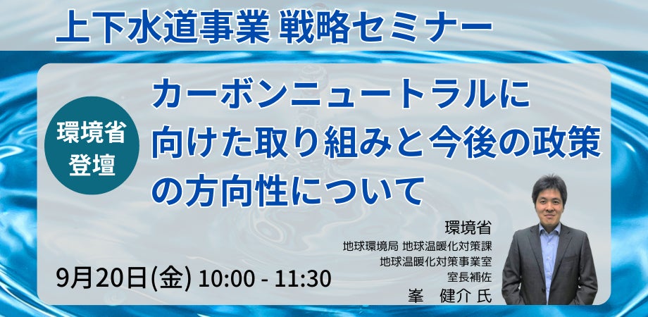 JPI(日本計画研究所)は、環境省 地球環境局 地球温暖化対策課 地球温暖化対策事業室 室長補佐 峯 健介 氏を招聘し、上下水道事業に関するカーボンニュートラルに向けた今後の取り組みについて詳説いただくセミナーを開催します。