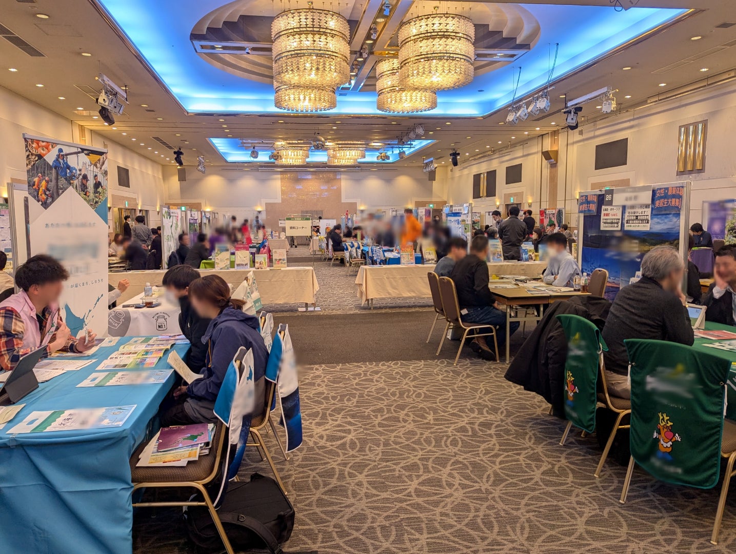 北海道内の59市町村等のブースが参加し、受入れを行う担当者から地域の受入条件や支援制度などの話を聞くことができます。また、個別相談にも対応しています。