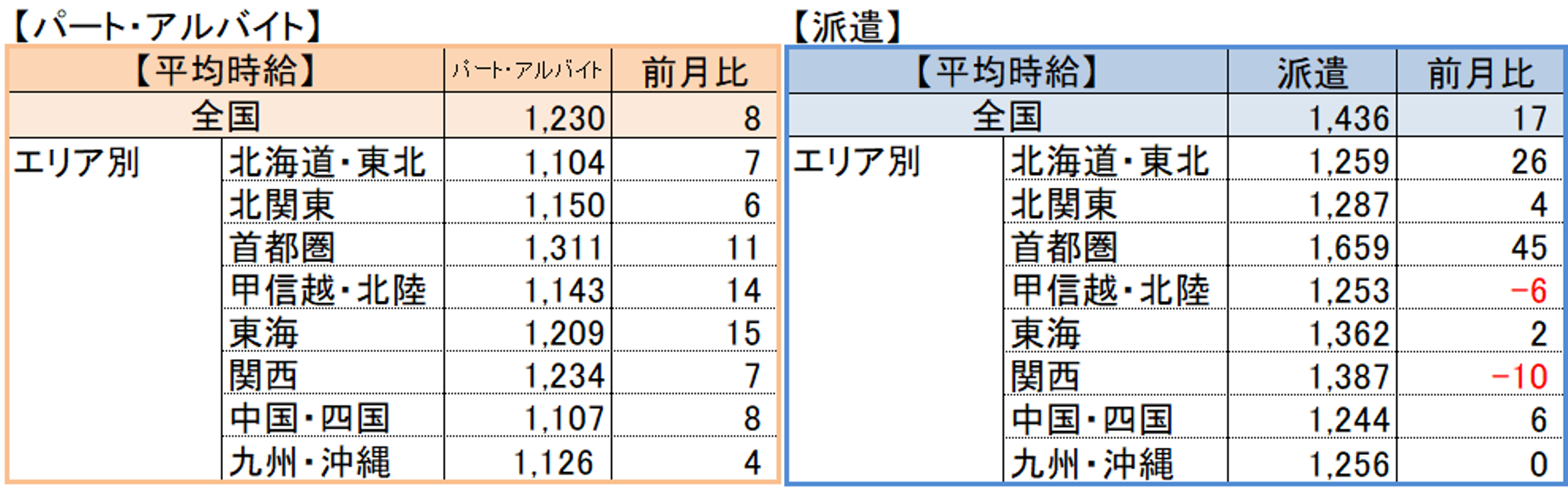 【パート・アルバイト】全国・全職種平均時給は1,230円。前月比+8円。前年同月比+37円。
