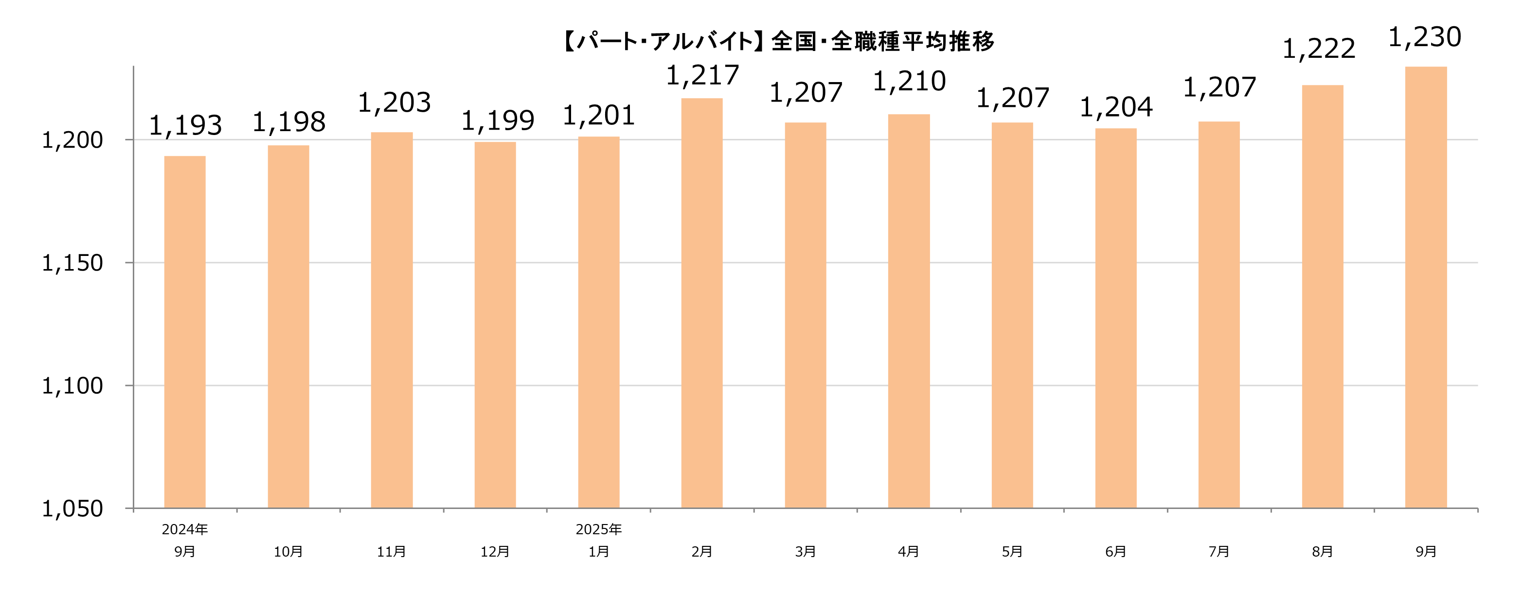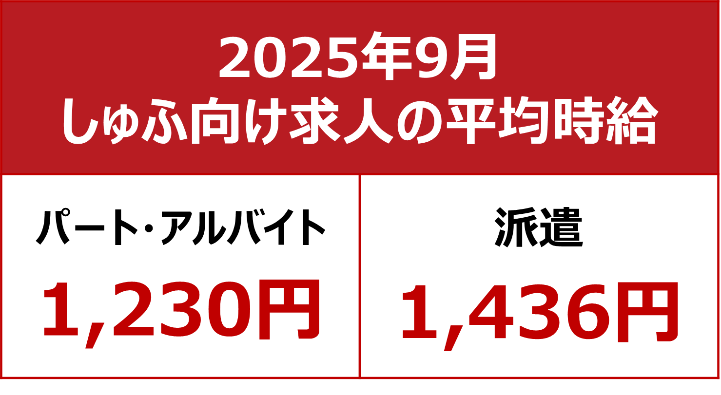【2025年9月しゅふ求人の平均時給】パート・アルバイト:『1,230円』、派遣:『1,436円』/パート時給過去最高を更新!