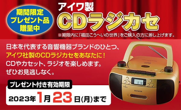 さらに、1月23月)までのキャンペーン期間中にご購入いただくと、期間限定のプレゼント「アイワ社製 CDラジカセ」付きでお届けします。