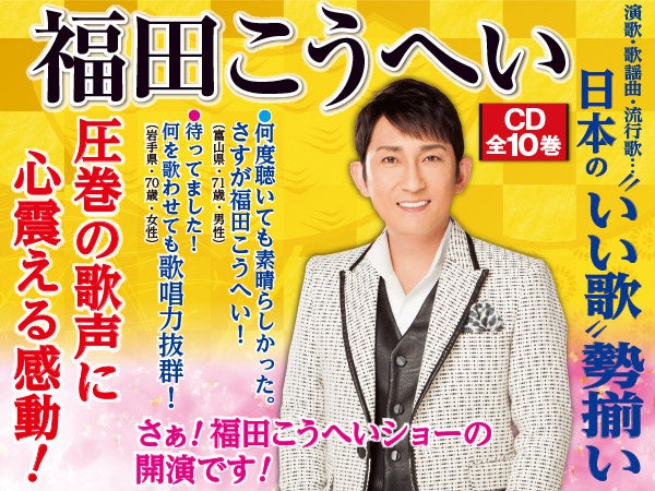 株式会社ユーキャン(東京都新宿区、代表取締役社長:品川 泰一)は、聴く人の心を魅了する“令和の演歌スター”福田こうへいの魅力を詰め込んだCD全集『福田こうへいの世界』のテレビCM・新聞広告によるキャンペーン(一部地域を除く)を開始しました。
