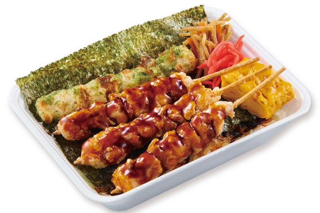 揚げたてから揚げとテリー伊藤こだわりの玉子焼き「から揚げの天才」で、2023年12月1日(金)から、期間限定で大好評ののり弁シリーズの最新作「焼鳥のり弁」を販売開始いたします。串揚げにしたオリジナルの焼鳥が3本も入っており、とにかく焼鳥のタレとご飯が合います!! 年末にして今年最高傑作ののり弁が誕生しました!! 期間限定「焼鳥のり弁」は、740円(税込)です!!