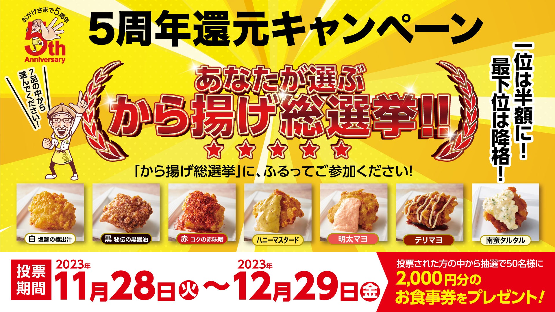 メニューから降格!」となります。さらに、5周年を記念してキャンペーンに投票された⽅の中から、抽