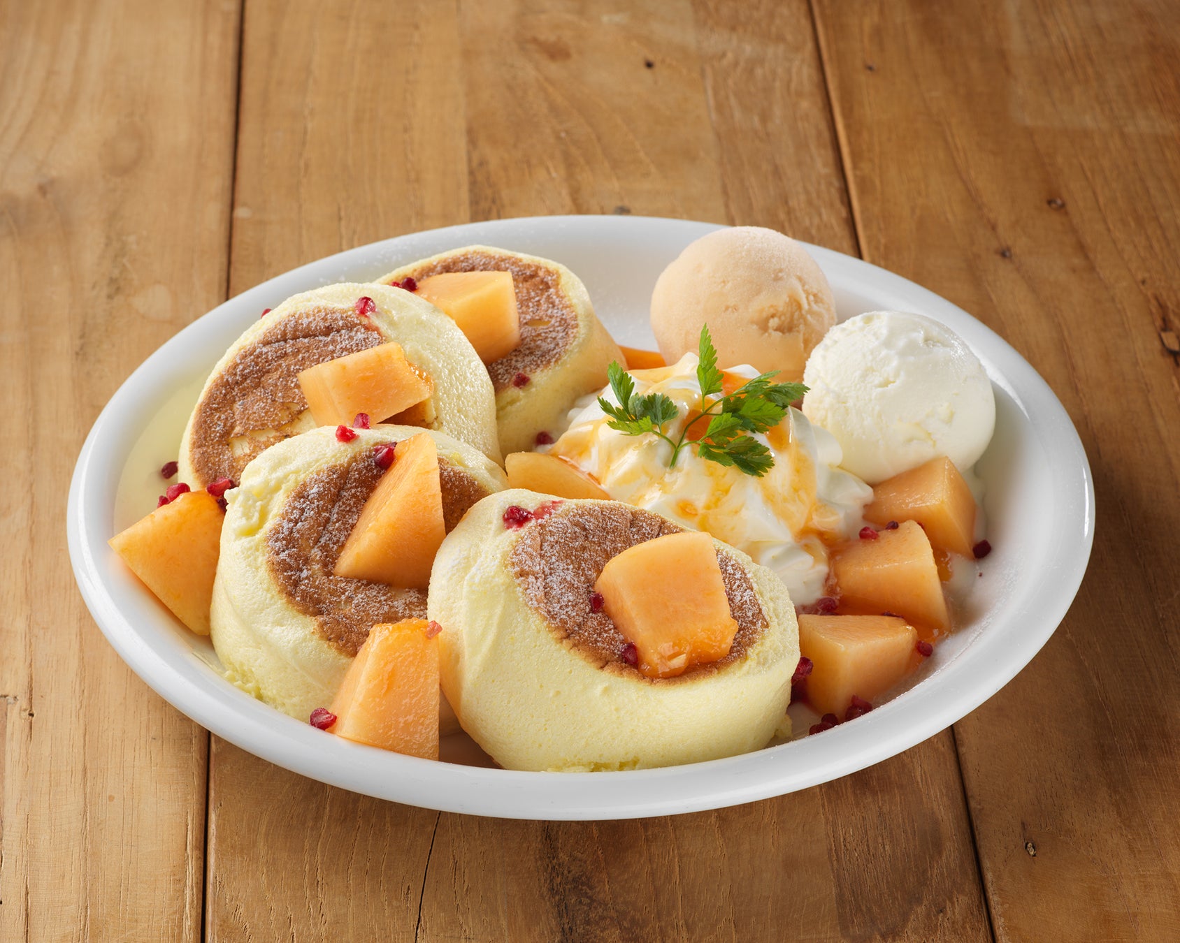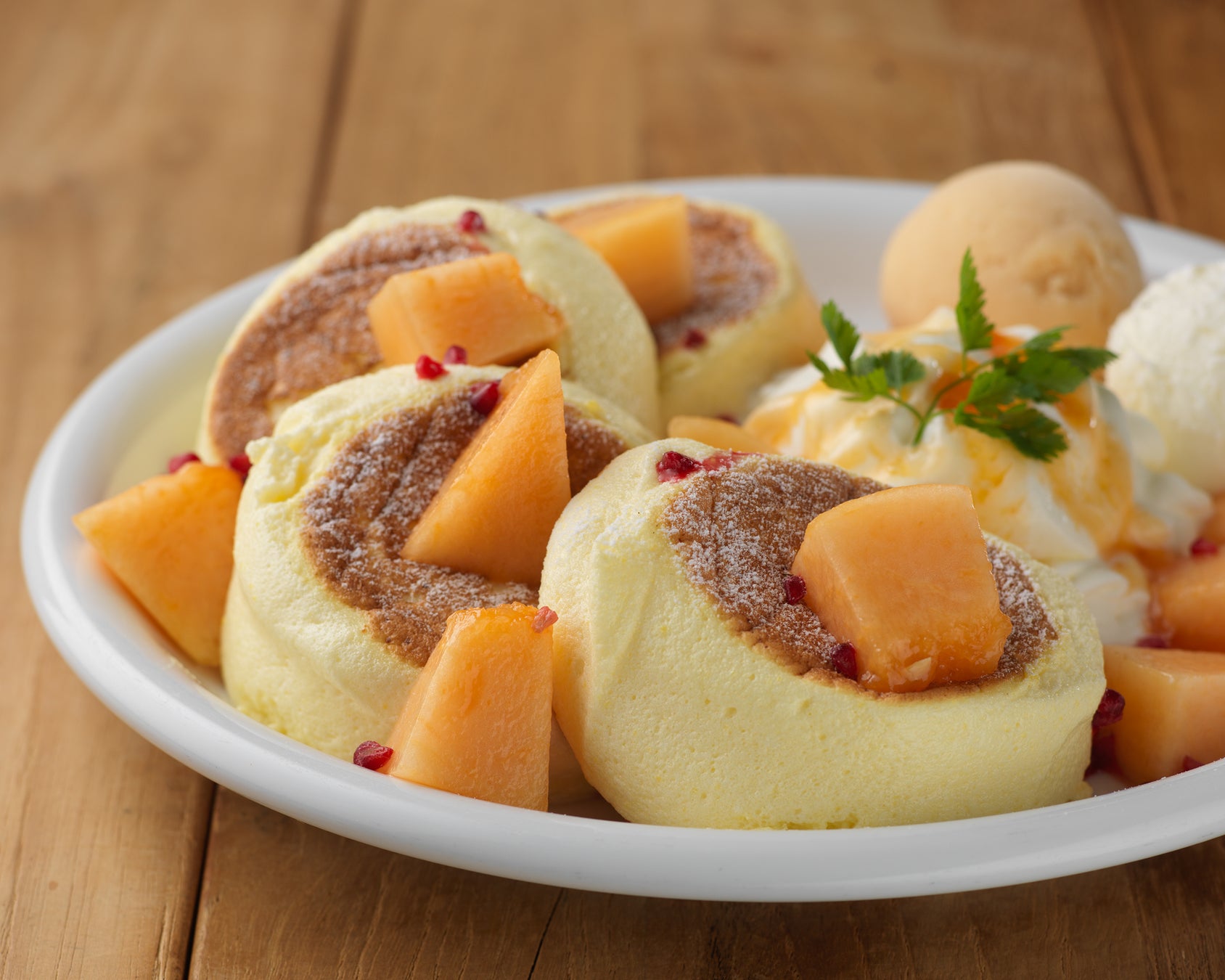 みずみずしく芳醇な北海道産の赤肉メロンを、贅沢に楽しめるパンケーキ。