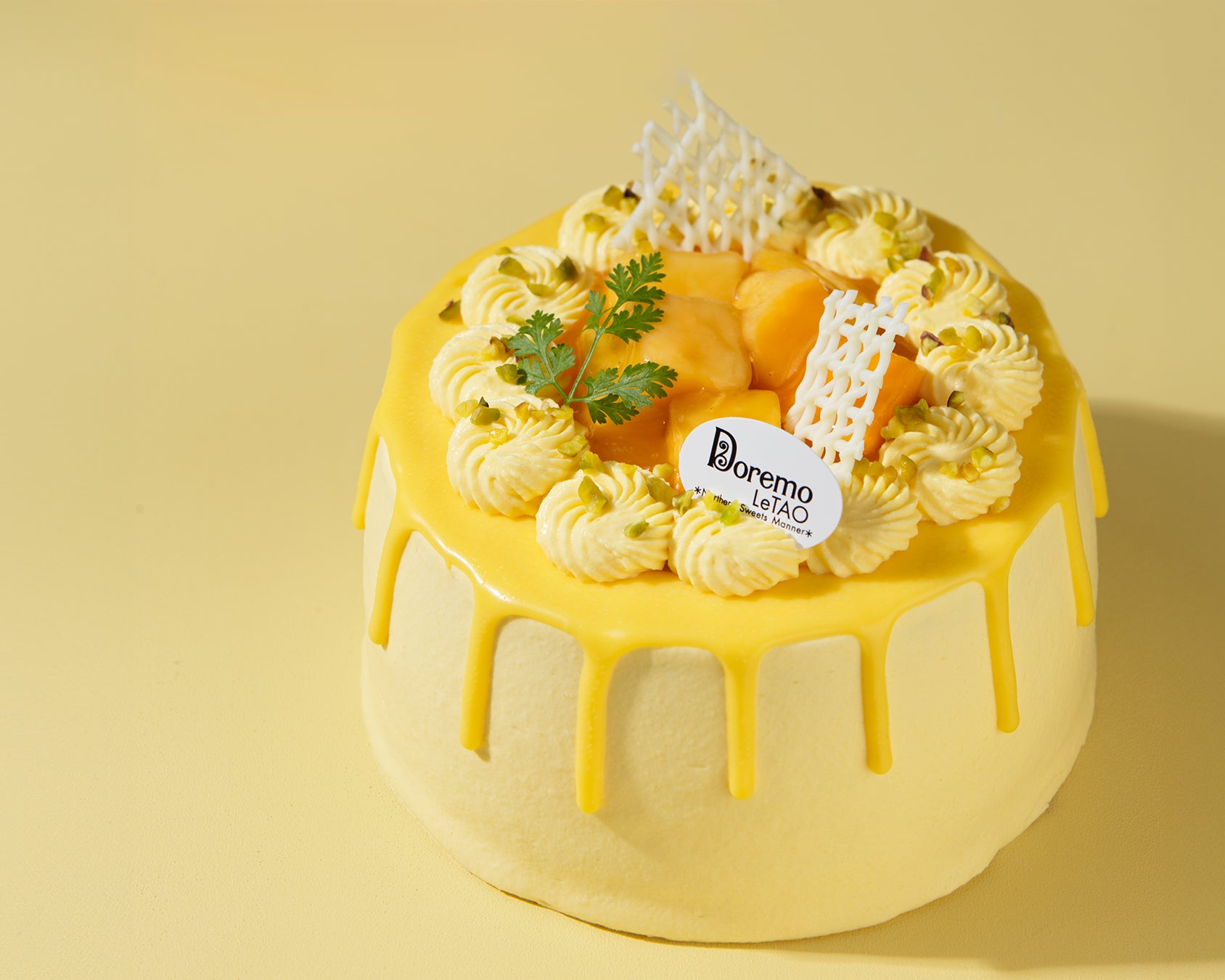 華やかな甘さのマンゴームースに、コクのあるバニラムースを重ね、ふわふわのシフォン生地で包み込みました。天面には、まろやかな甘さのマンゴーのグラサージュ、マンゴークリーム、マンゴーをゴロっとトッピングし、マンゴー好きにはたまらないトロピカルな味わいに仕上げています。
