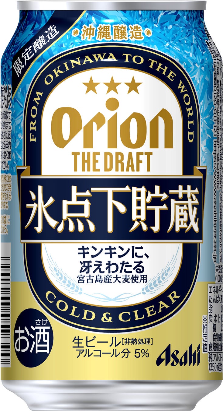 『アサヒオリオン ザ・ドラフト氷点下貯蔵』は、澄み切った味わいが特長の夏にぴったりな商品です。熟成工程において、オリオンビール史上最も低い温度でビールを貯蔵する“氷点下貯蔵”を採用し雑味を徹底的に取り除くことで、すっきりとした味わいを実現しました。