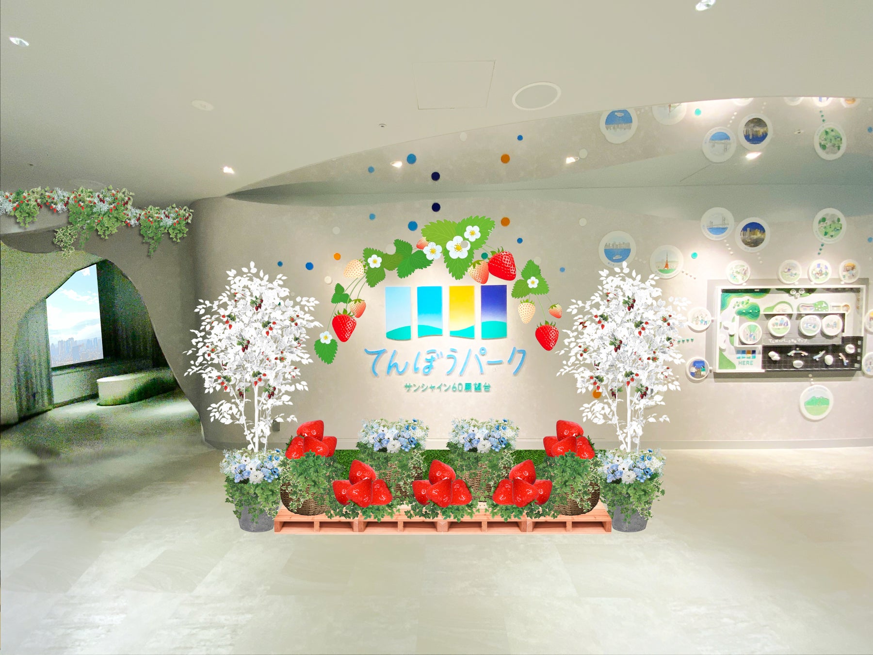 サンシャイン60展望台 てんぼうパーク(東京・池袋)では、冬に旬を迎える“いちご”をテーマにしたイベント「てんぼうパーク いちごびより」を2025年12月9日(火)~2026年2月15日(日)に開催します。