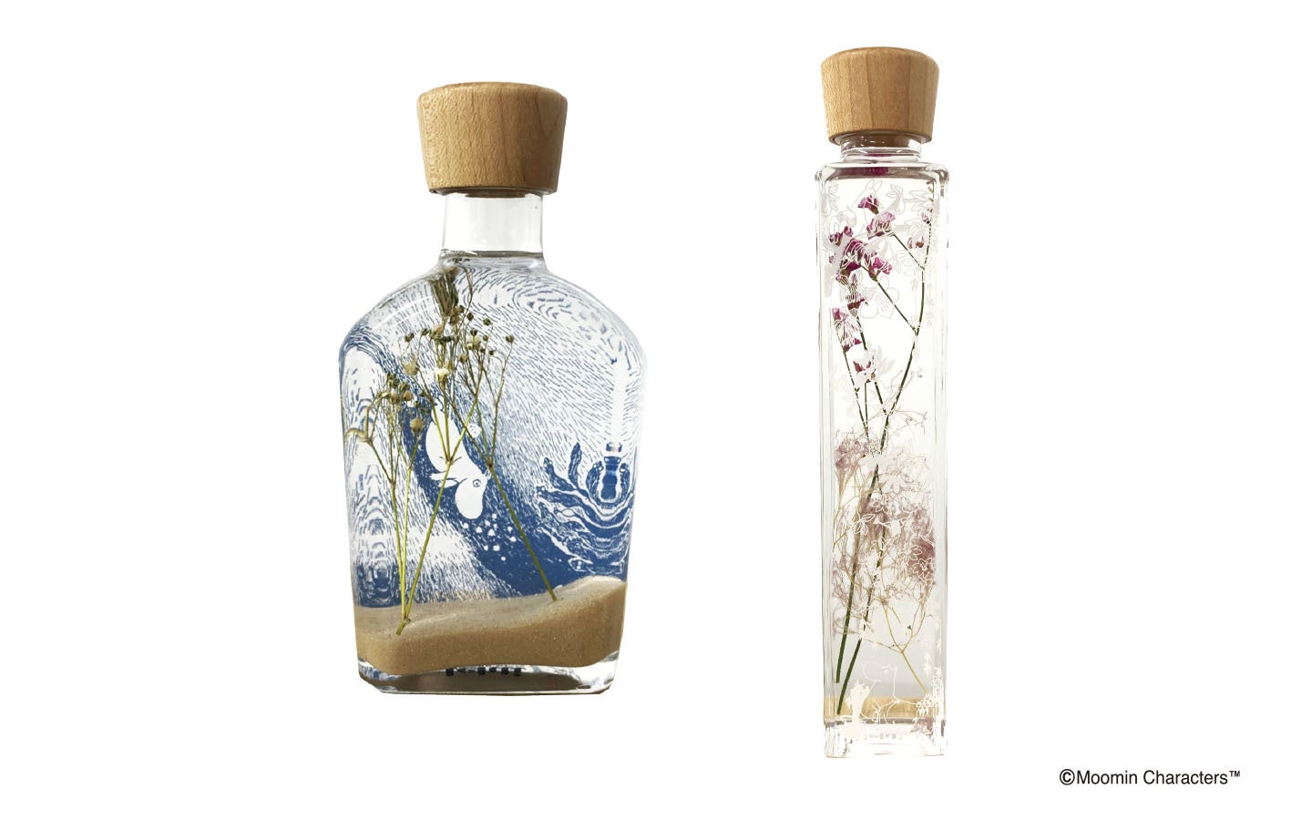 小説『ムーミン』のイラストを使用して、小さいガラス瓶にお話の世界を詰め込んだハーバリウムです。海の中を泳ぐムーミンを表現したUnder the Sea、お花に包まれたようなムーミンを表現したFamily Garden、いずれもフォトジェニックでお部屋のインテリアとしてご利用いただけます。