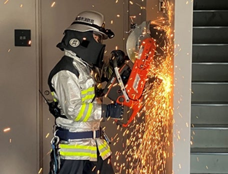 両機関の各部隊は、各々の訓練目的に即した、火災等活動時におけるエンジンカッターでのドア破壊訓練、倒壊した建物内からの孤立者救助訓練、機材の習熟訓練等に熱心に取り組まれました。
