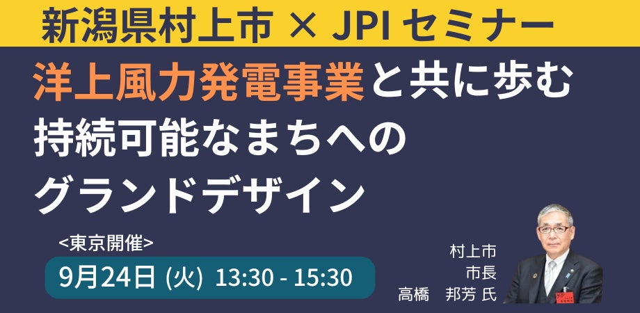 【JPIセミナー】「新潟県村上市が拓く~洋上風力発電事業と共に歩む持続可能なまちへのグランドデザイン」9月24日(火)<東京開催>