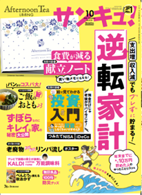 昨年大好評だった食費がみるみる下がる献立ノート。今年は人気の時短節約家のくうちゃん監修はそのまま、デザインはAfternoonTea(アフタヌーンティー)とコラボで登場。ダメ家計から脱出した逆転家計の特集のほか、サンキュ!史上最もわかりやすい投資入門付録など、値上げに負けない家計を応援する5大付録つき 特別価格660円