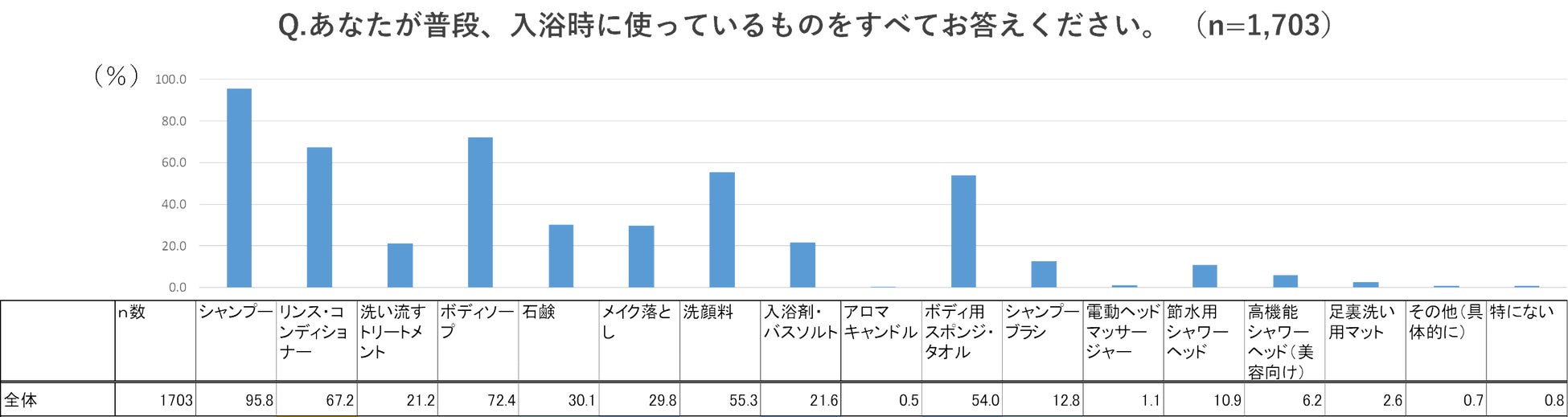 日用品・化粧品・雑貨類も含め、入浴時に使っているアイテムについて調査しました。