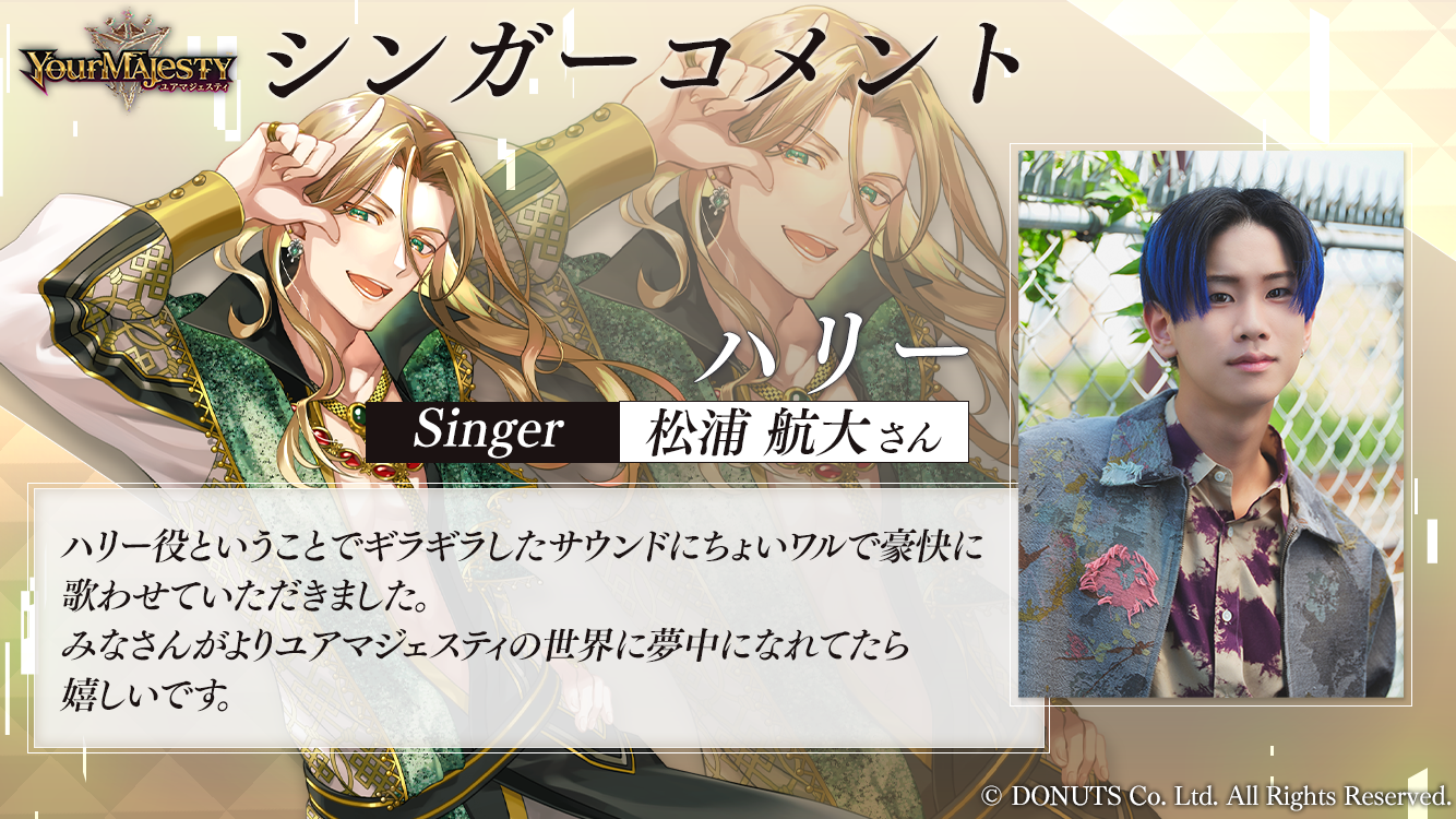 ハリー役ということでギラギラしたサウンドにちょいワルで豪快に歌わせていただきました。みなさんがよりユアマジェスティの世界に夢中になれてたら嬉しいです。