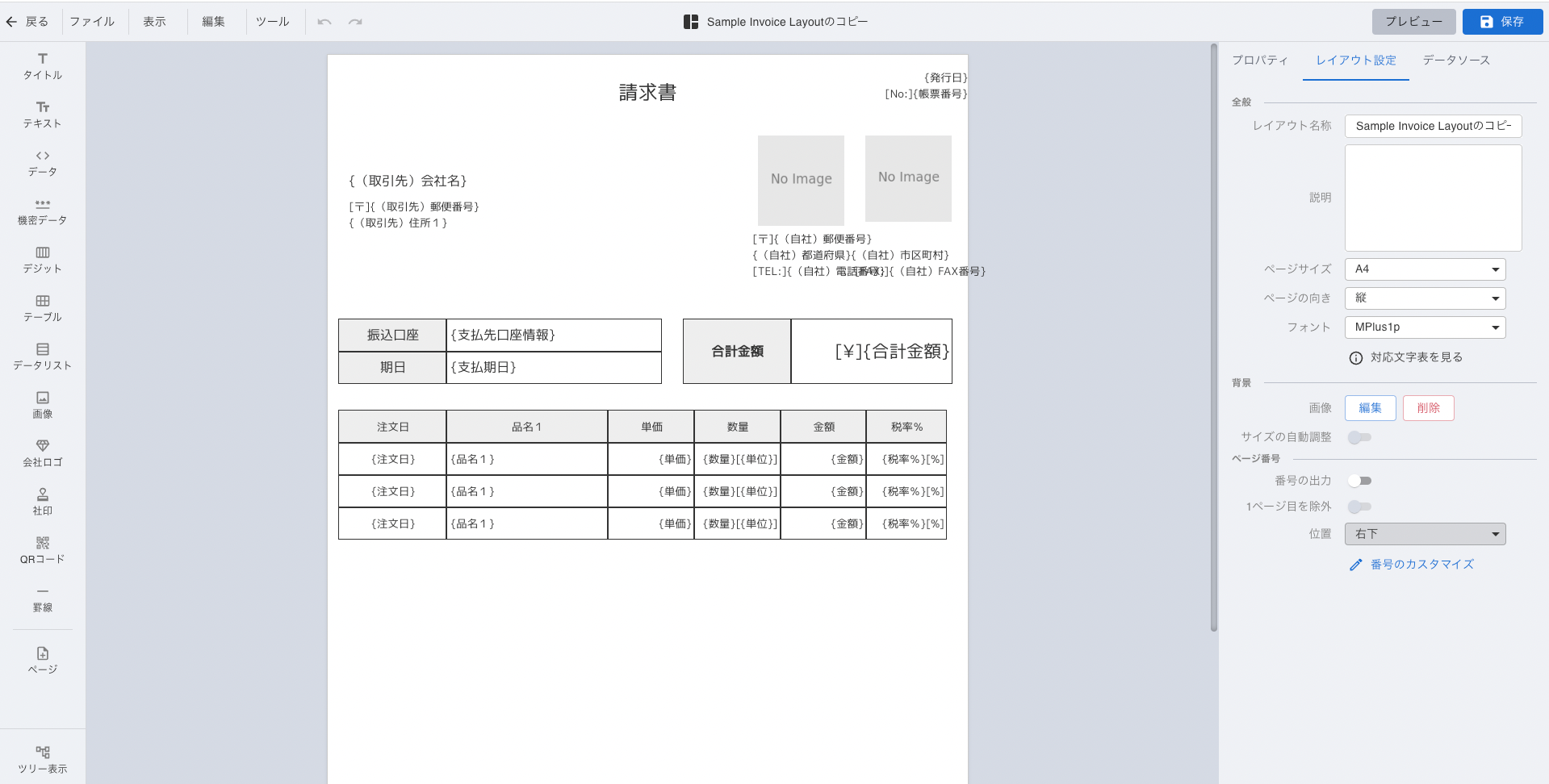 ・ロゴ、角印なども配置可能です。