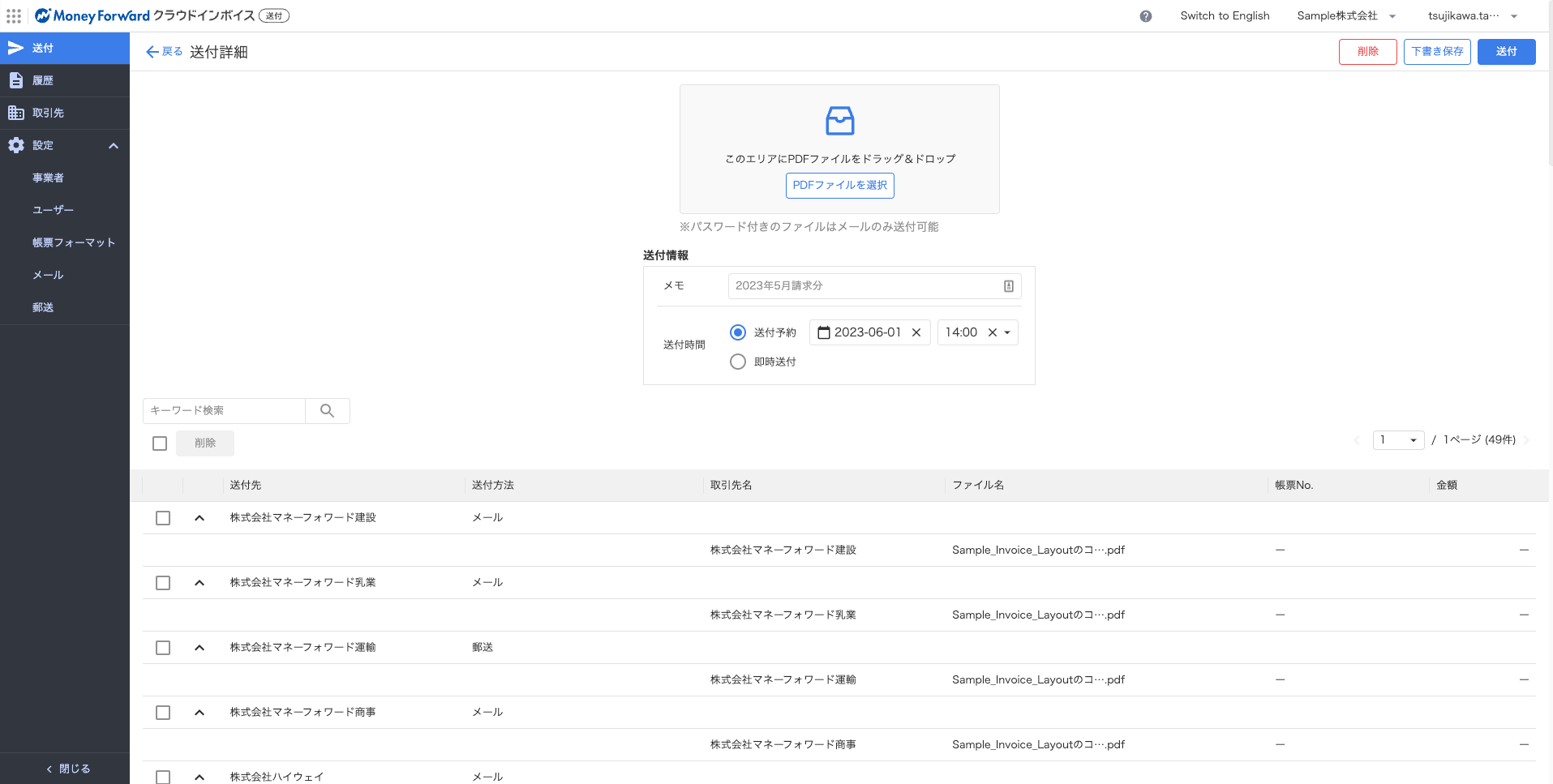 『マネーフォワード クラウドインボイス』の「送付機能」について