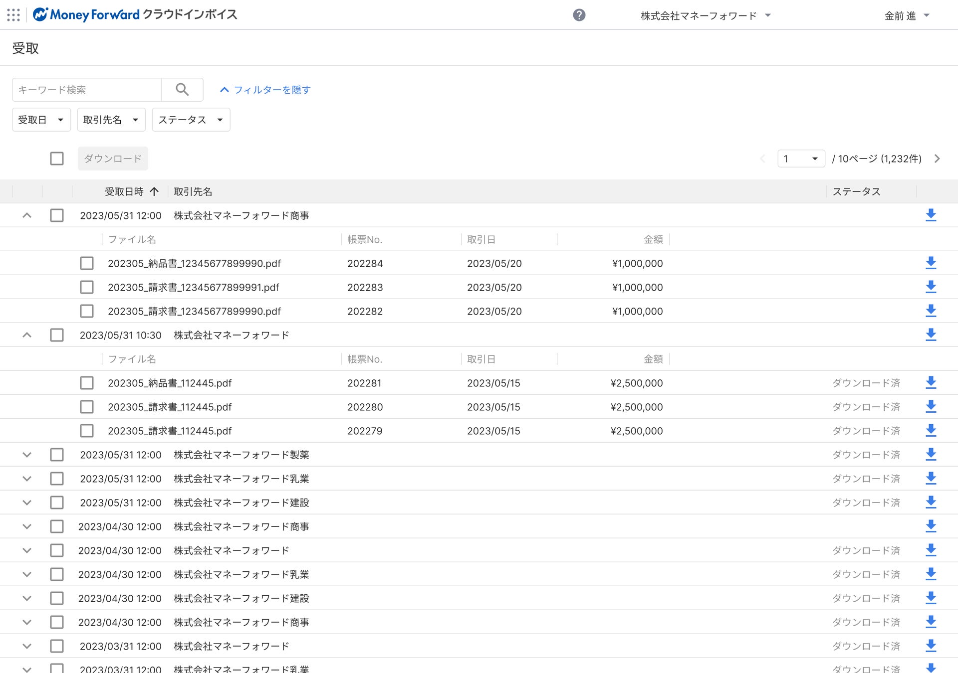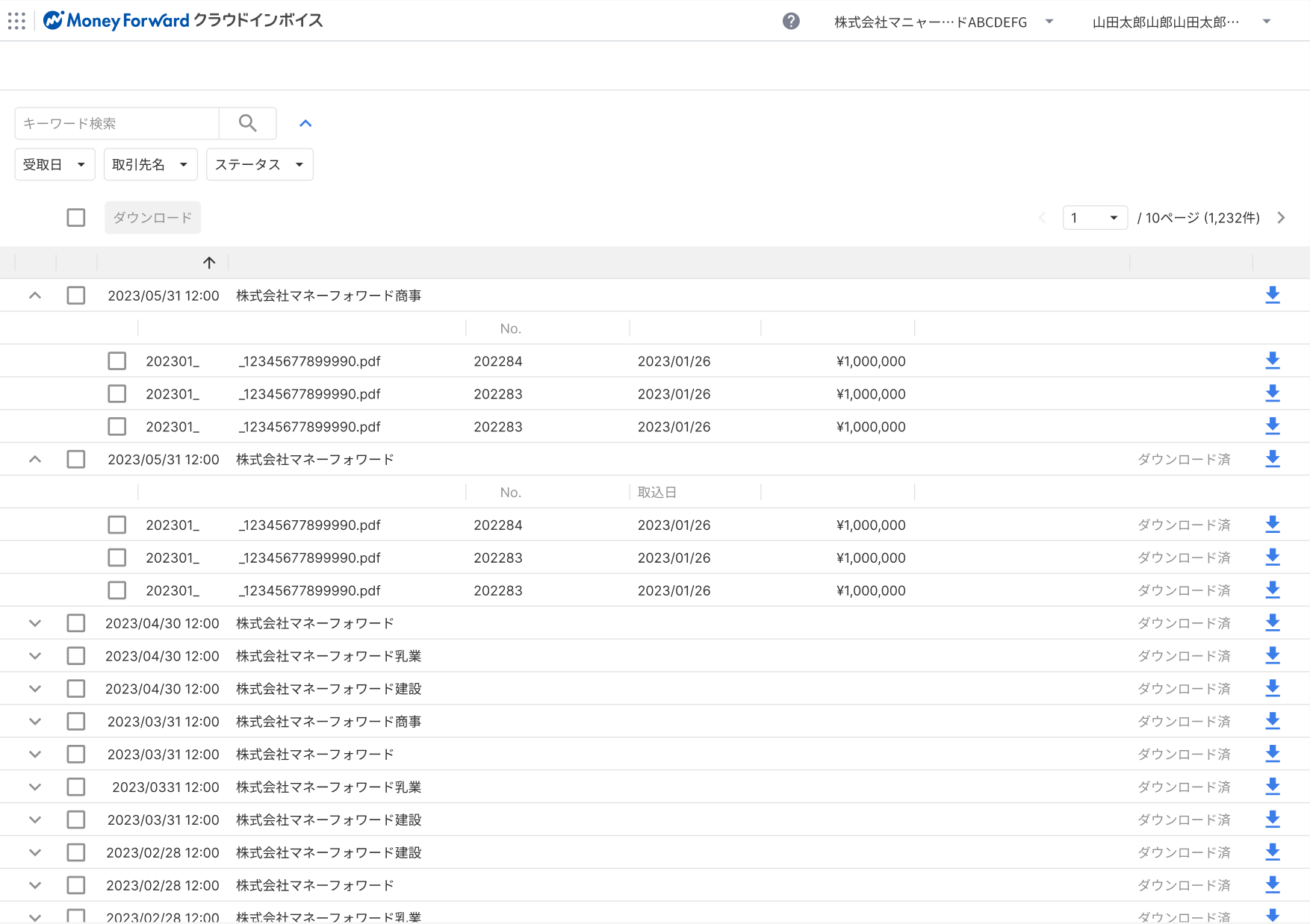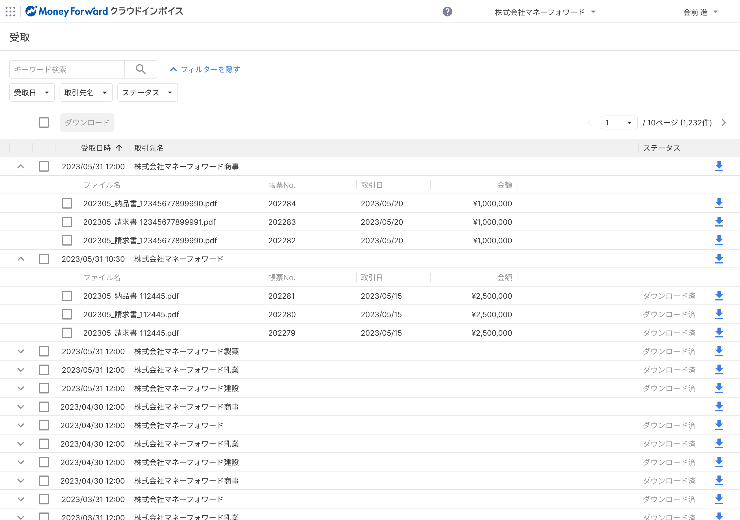 ・取引先が受け取った取引関連帳票は、受取マイページでまとめて閲覧可能です。