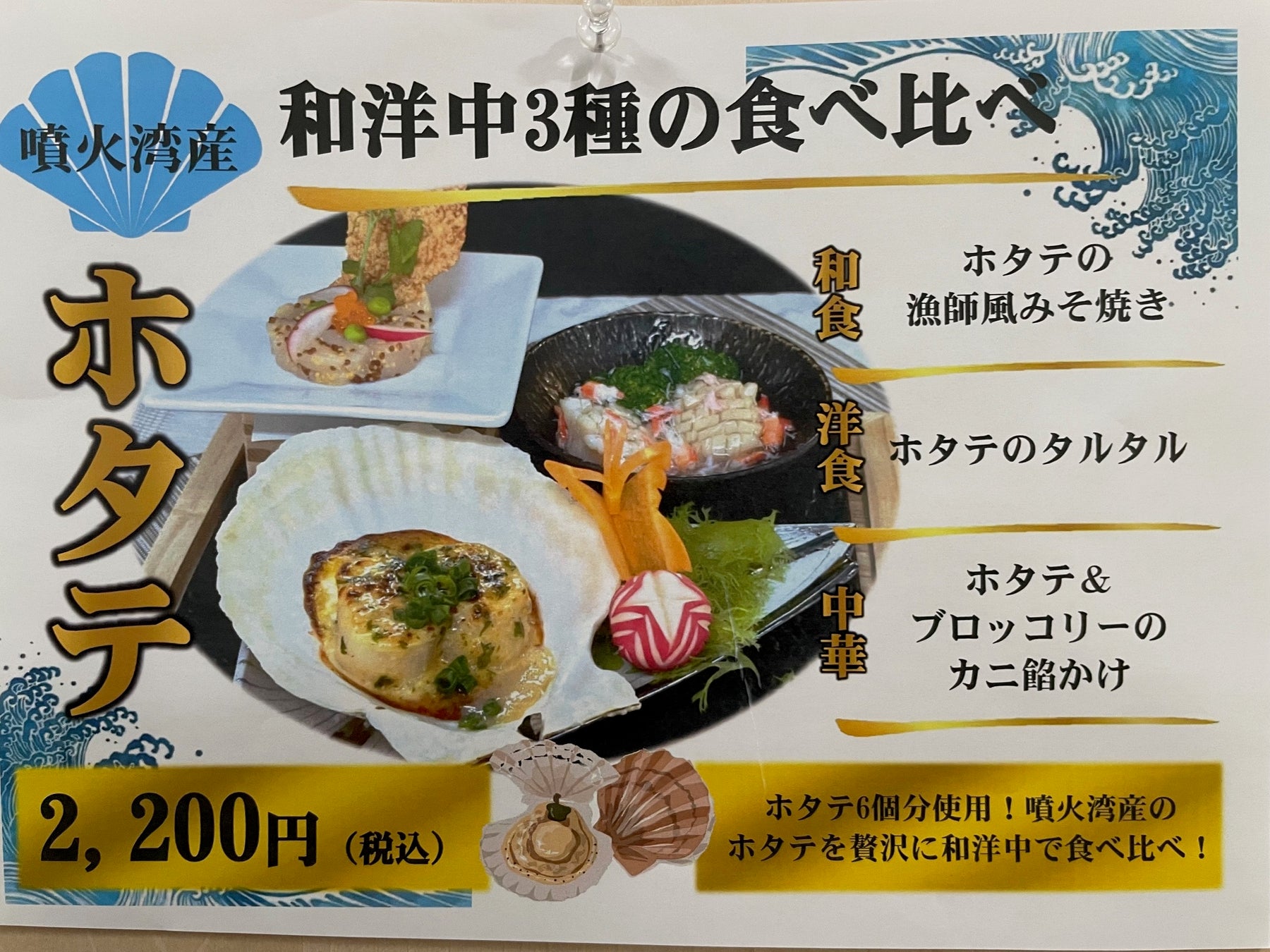 【北海道/北湯沢温泉/緑の風リゾート】1日5皿限定販売! 北海道噴火湾産ホタテの和洋中3種食べ比べはいかがでしょうか
