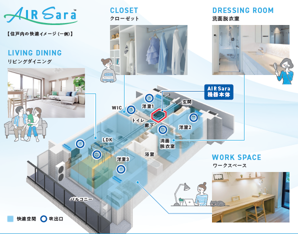 (1)湿度(しつど)が取り切れない時期でもしっかり除湿し、住戸全体をさらっと快適に!