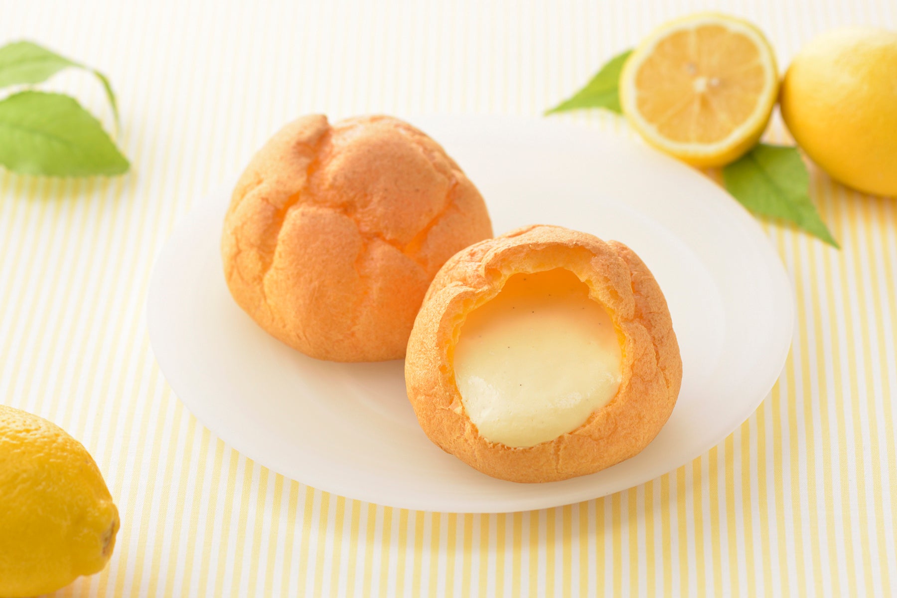右:ジャンボシュークリーム(瀬戸内レモン) 価格:150円(税込162円) 販売:販売中 〜8月31日(木)頃