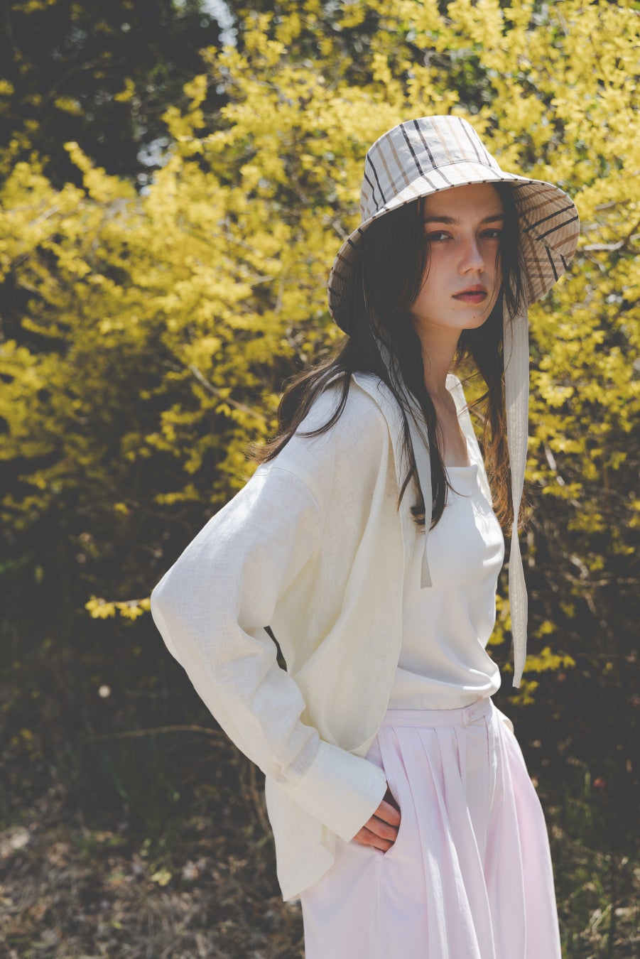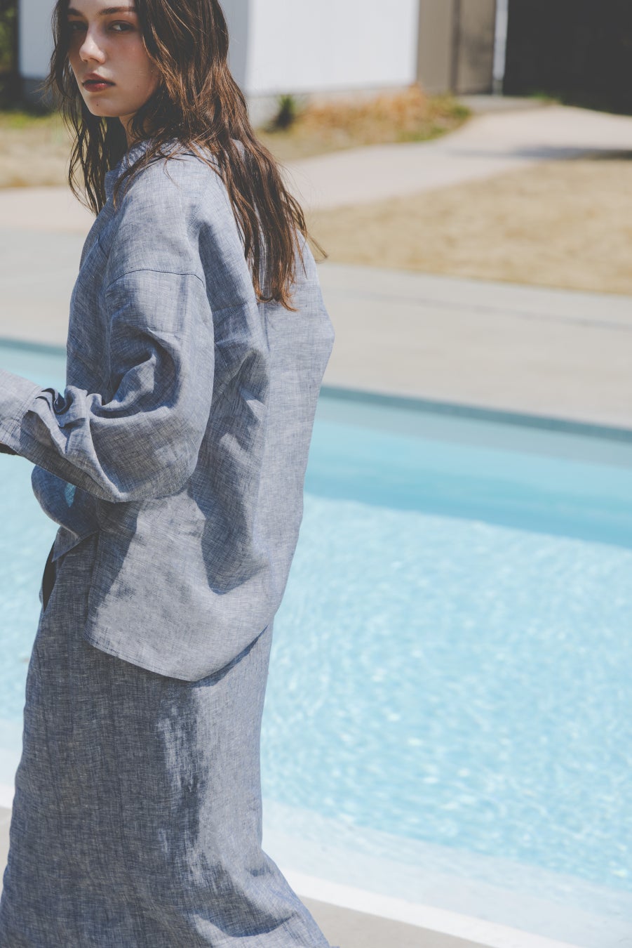 「ヨーロピアンリネン」の軽やかな肌触りで、夏を美しく。清涼感と洗練が共鳴する、都会のサマールック。長く続く暑い夏に、上質な清涼感を。