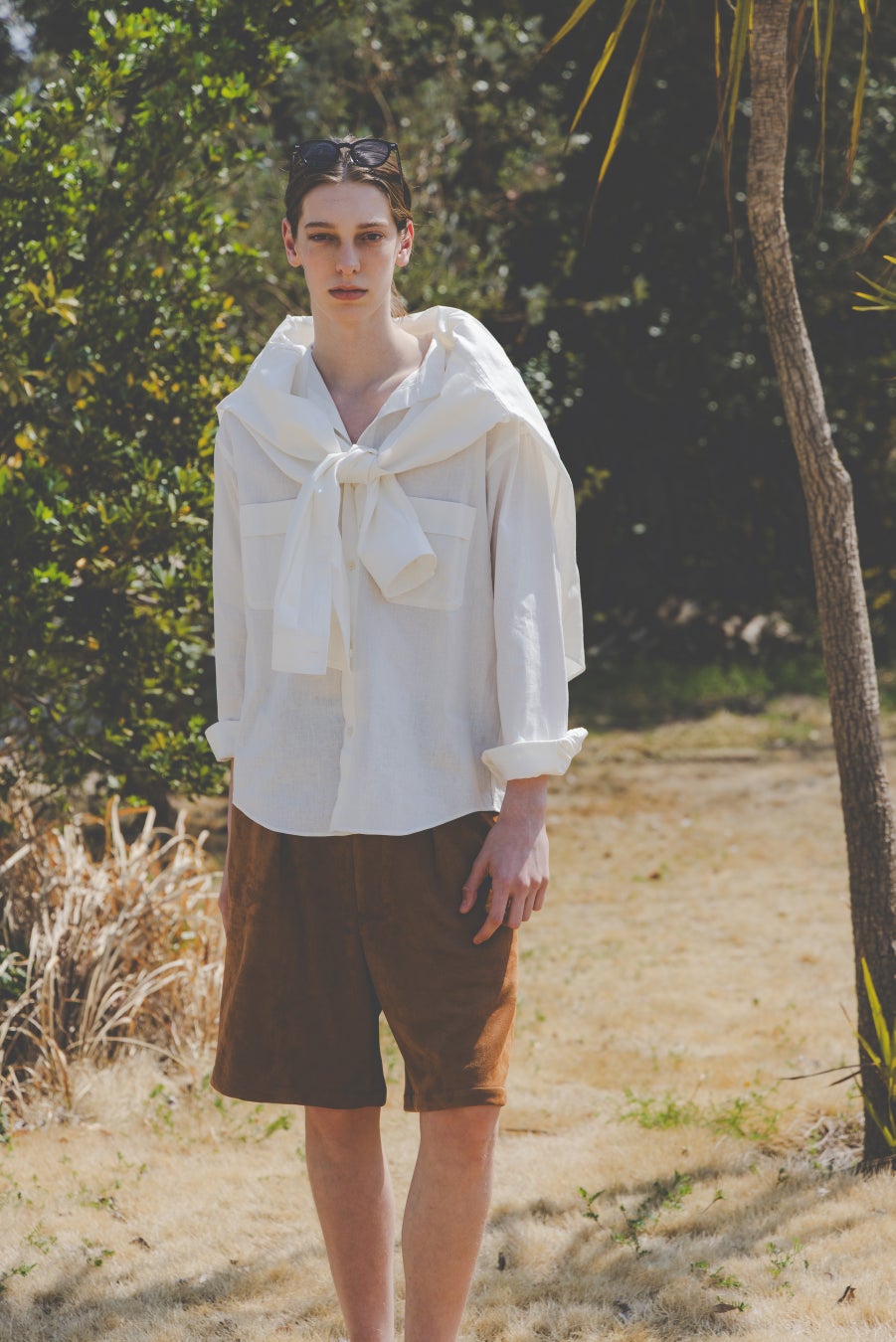 「BELGIUM LINEN FABRICS」リネンコットンスタンドカラーシャツ ¥9,900(税込)