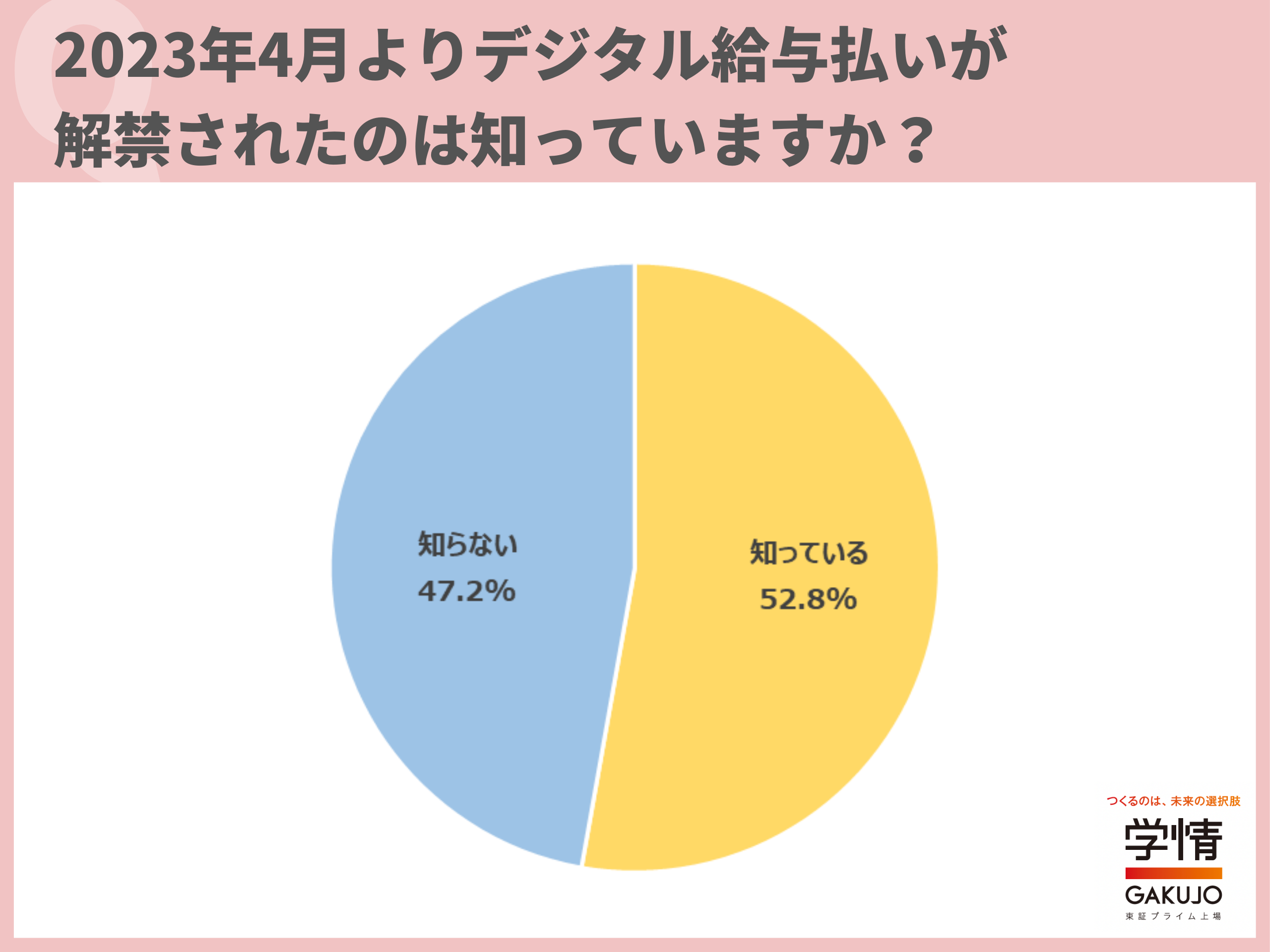 2023年4月よりデジタル給与払いが解禁されたことについて、「知っている」と回答した20代は52.8%でした。