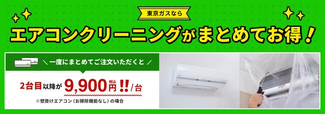 *1:壁掛けエアコン(お掃除機能なし)の場合、13,200円(税込)から注文可能で、複数台のエアコンをまとめて注文すると2台目以降が9,900円/台(税込)となる「まとめて割」も実施。