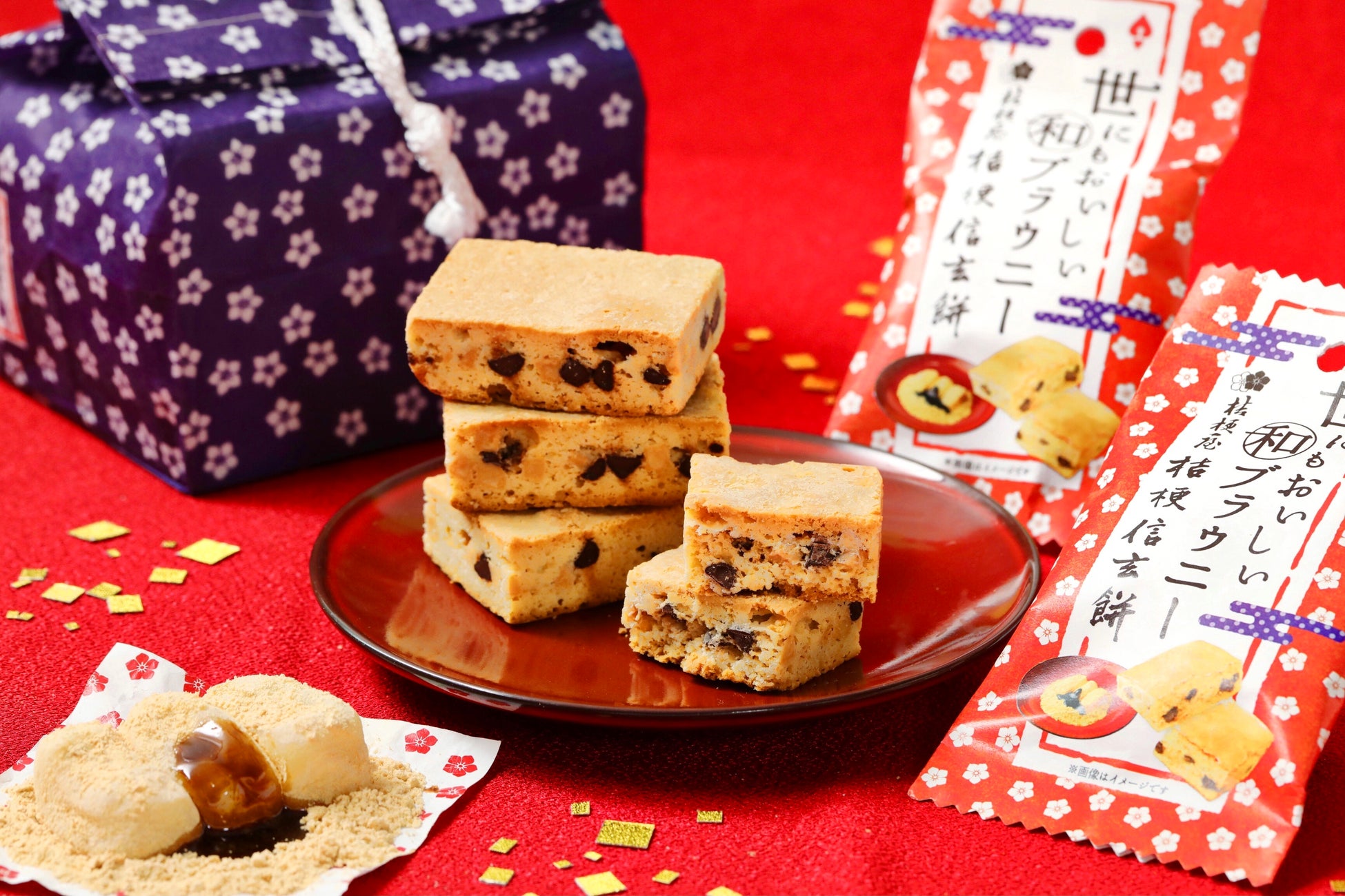 チョコベースのブラウニー生地に「桔梗信玄餅」と同じ黒みつを合わせました。今年は、き
