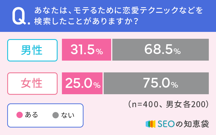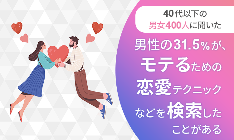 【40代以下の男女400人に聞いた】男性の31.5%が、モテるための恋愛テクニックなどを「検索したことがある」