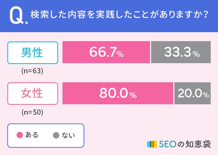 また男性の66.7%、女性の80%が「検索した内容を実践したことがある」と答えていました。