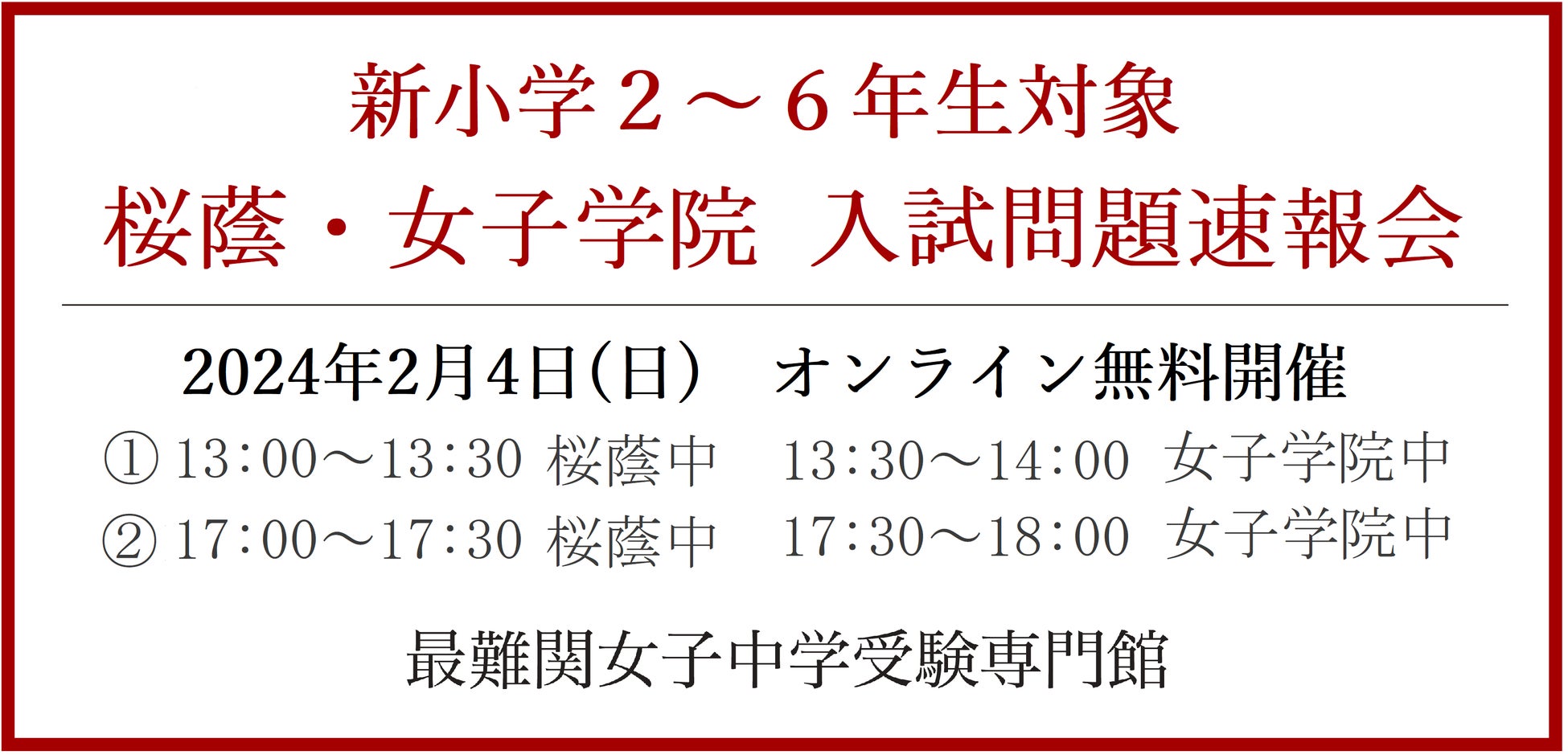 ※①、②ともに同内容です、桜蔭・女子学院どちらかのご参加も可能です。
