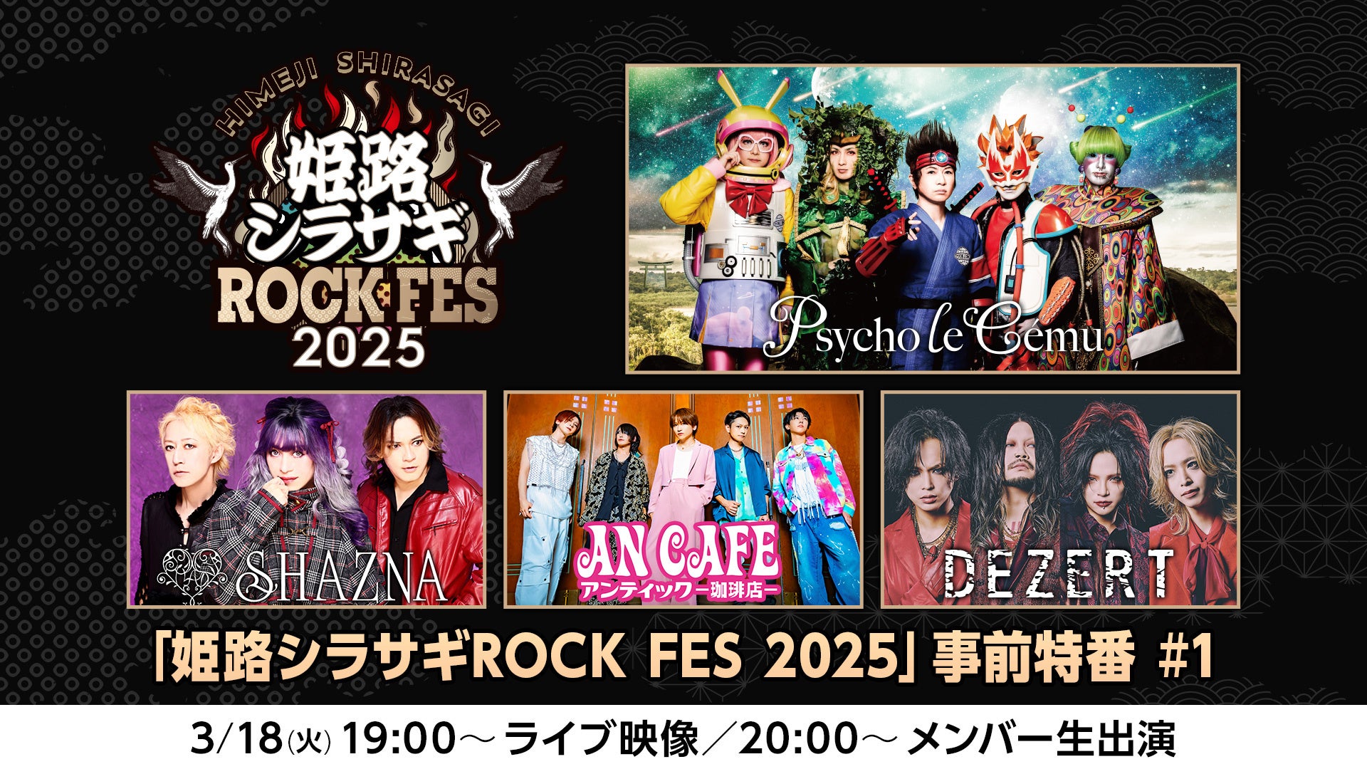 Psycho le Cemu、SHAZNA、アンティック-珈琲店-、DEZERTからメンバーが生出演!「姫路シラサギROCK FES 2025」事前特番がニコ生で放送決定!【3/18(火)20時~】