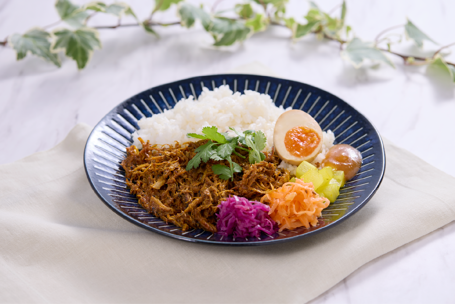 ロスパンで育った鶏とその卵、規格外の柿、コーヒーかすなど、本来は廃棄される可能性のある素材を組み合わせたパキスタンカレーです。単体では使いづらい食材も、スパイスを効かせたカレーに落とし込むことで、それぞれの個性を無理なく引き出し、奥行きのある味わいに仕上げました。親鶏の旨味、果実のやさしい甘み、コーヒー由来のコクと酸味が重なり食べ応えがありながらも、後味は軽やかな一皿です。