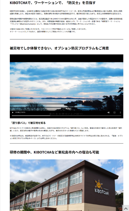今年はキボッチャ職員である語り部による、被災校舎内のツアーや周辺散策のオプションコンテンツを、研修2日目の昼休みを延長し実施します。これにより、参加者が「被災地のいま」により深く触れられる、体験価値の高い内容としました。全国から訪れた参加者に対し、震災に関する情報発信の機会を増やし、防災意識の啓発に貢献してまいります。