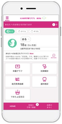 また、新型コロナウイルス感染症の影響により社会的に環境変化があるなかでも、アプリを通じて自治体からの注意情報や保健師からのアドバイスといった大切な情報をテキストや動画で必要な人に即時に届けることができるなど、非常時においても安心して出産・子育てができる環境づくりをサポートします。