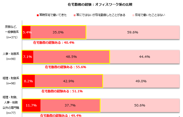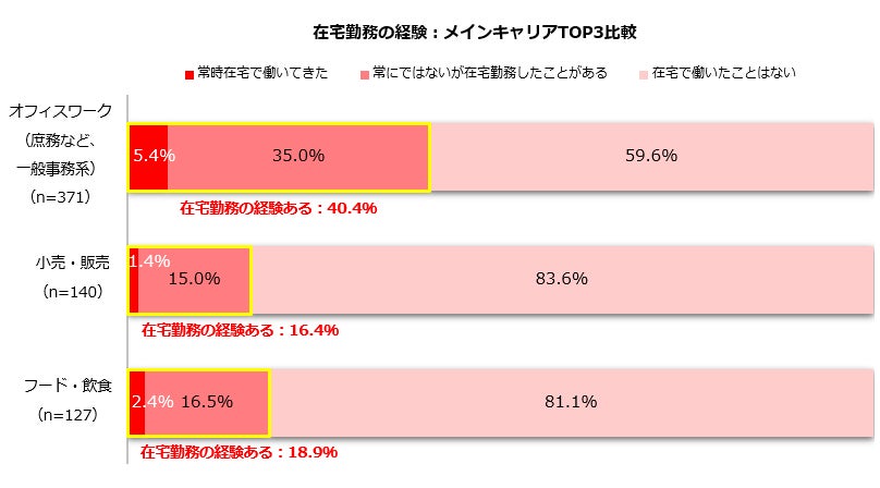 4.在宅勤務の経験比較②:メインキャリアTOP3/オフィスワーク系