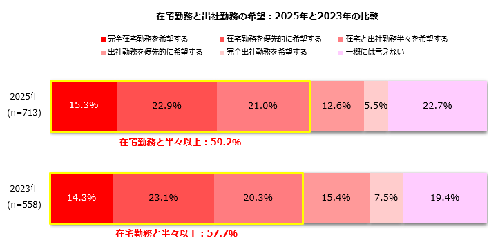 6.在宅勤務と出社勤務の希望比較①:2025年と2023年